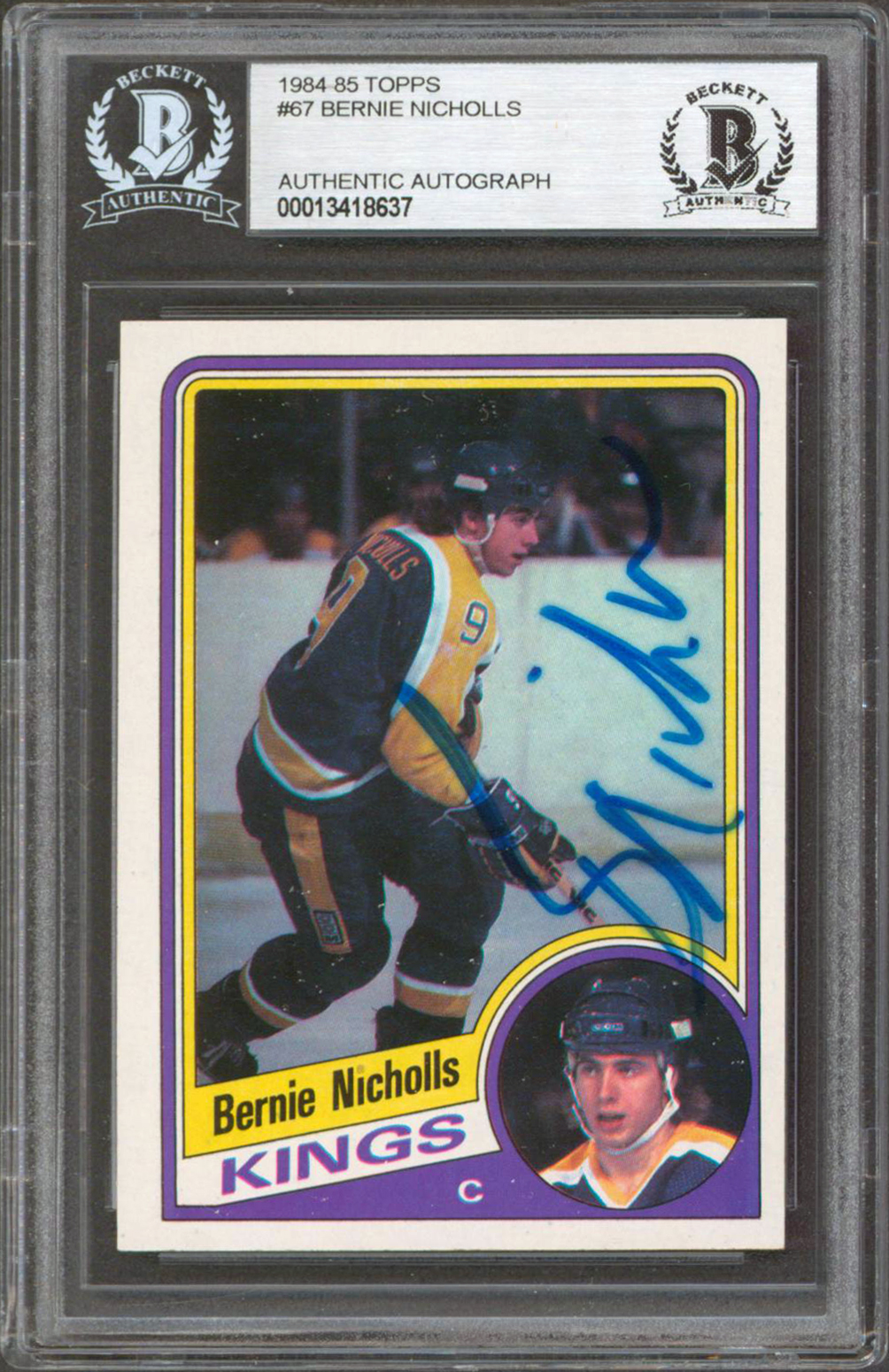 Kings Bernie Nicholls Authentic Signed 1984 Topps #67 Card Autographed BAS Slab