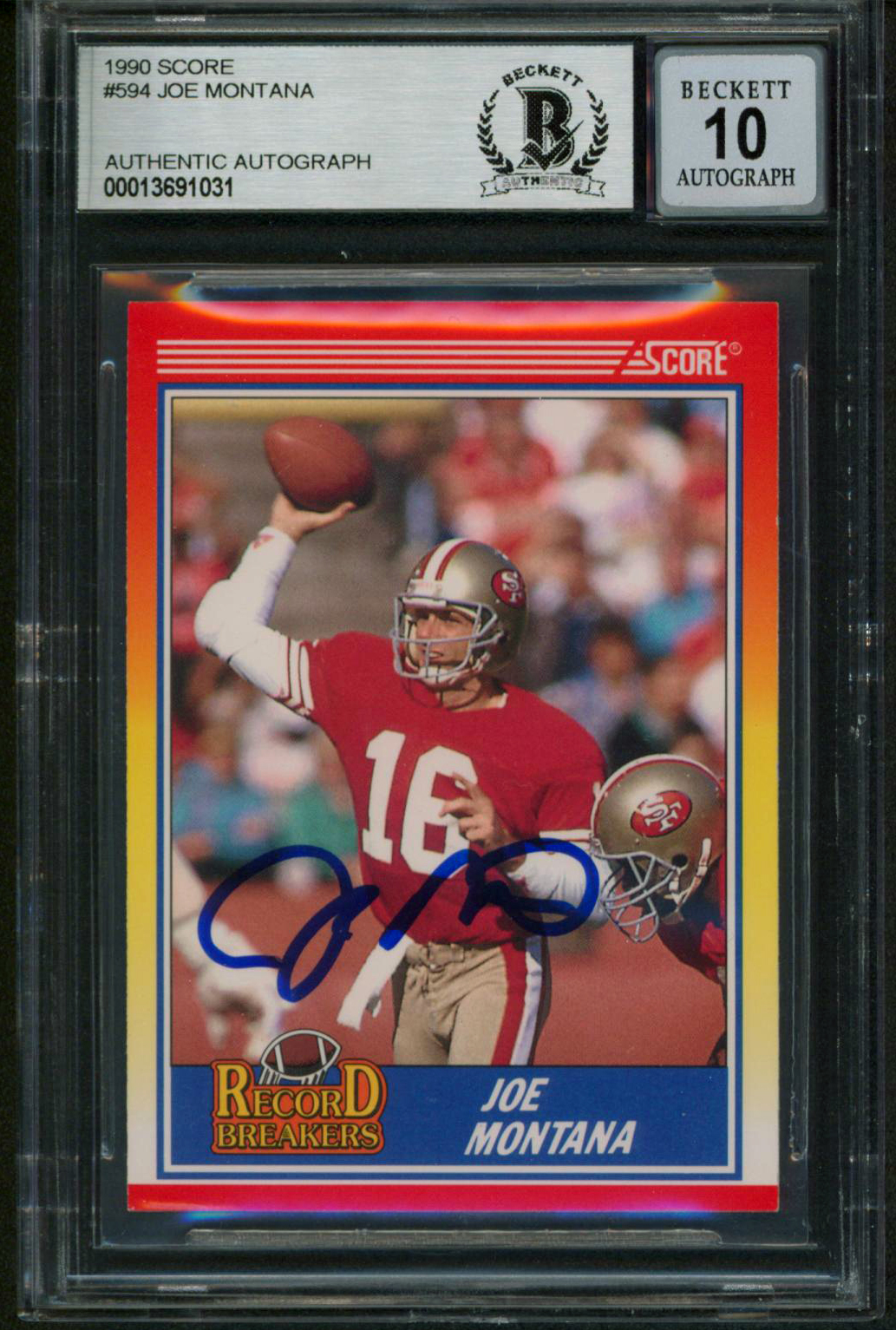 49ers Joe Montana Authentic Signed 1990 Score #594 Card Auto Graded 10! BAS Slab