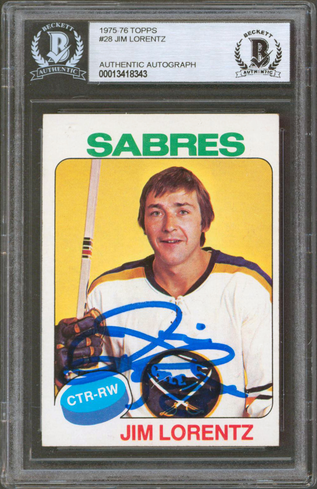 Sabres Jim Lorentz Authentic Signed 1975 Topps #28 Card Autographed BAS Slabbed