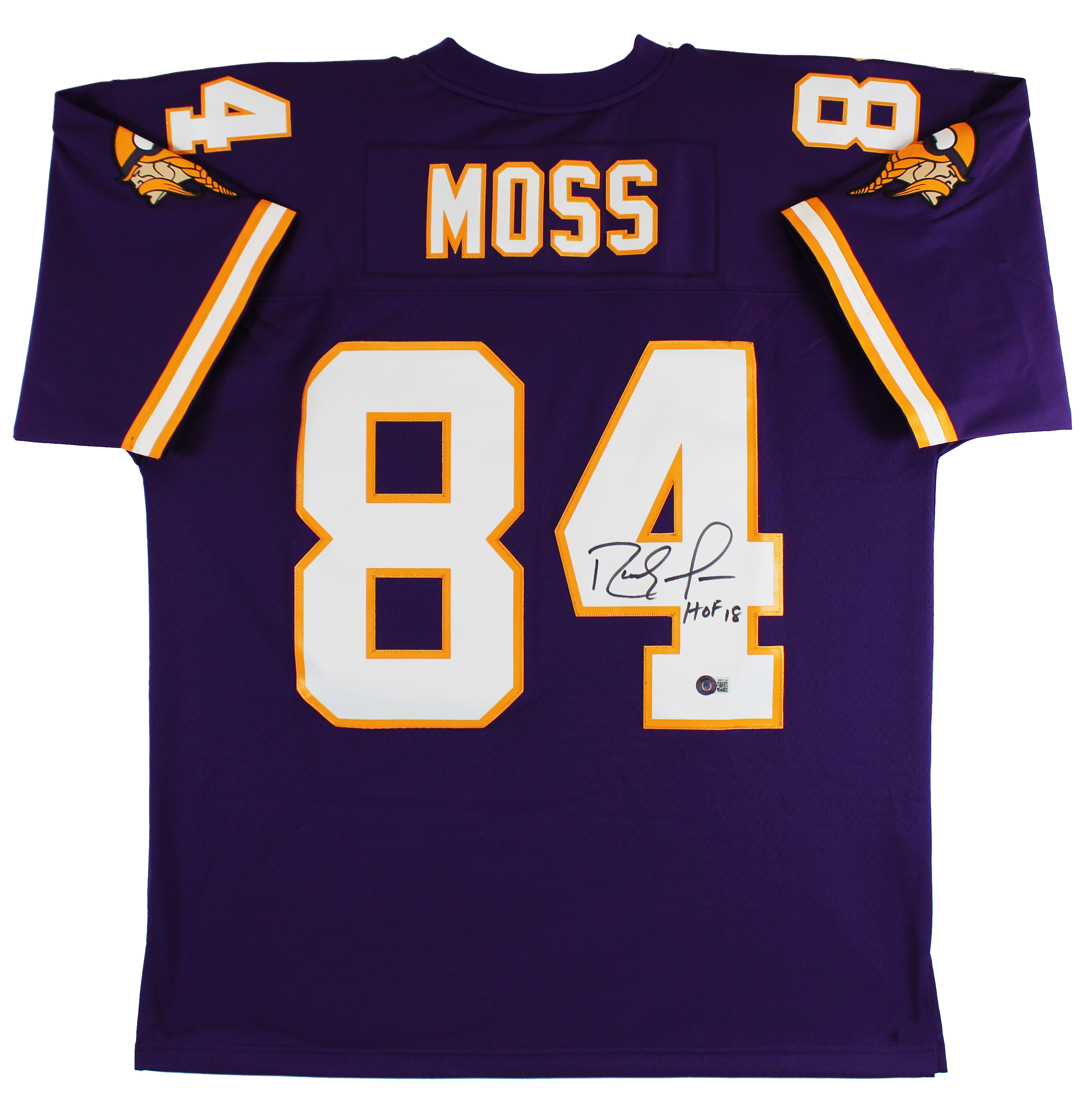 Vikings Randy Moss "HOF 18" Signed Purple Mitchell & Ness Jersey BAS Witnessed