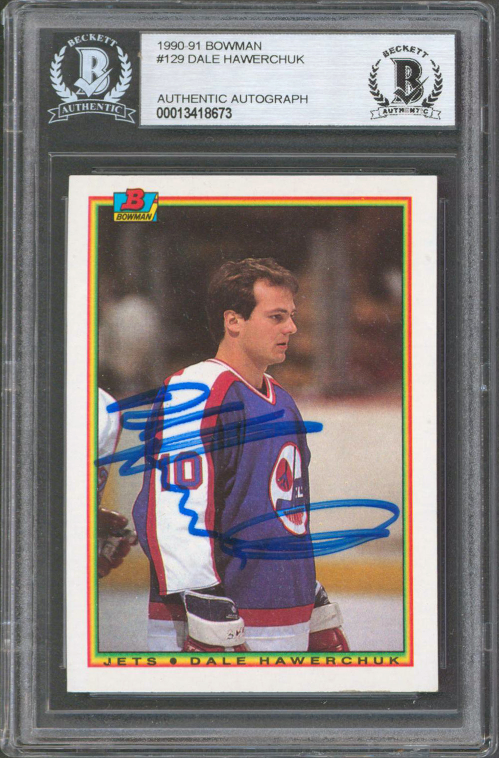 Jets Dale Hawerchuk Authentic Signed 1990 Bowman #129 Card Autographed BAS Slab