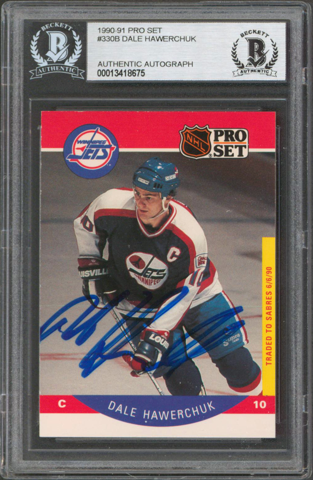 Jets Dale Hawerchuk Authentic Signed 1990 Pro Set #330B Card BAS Slabbed