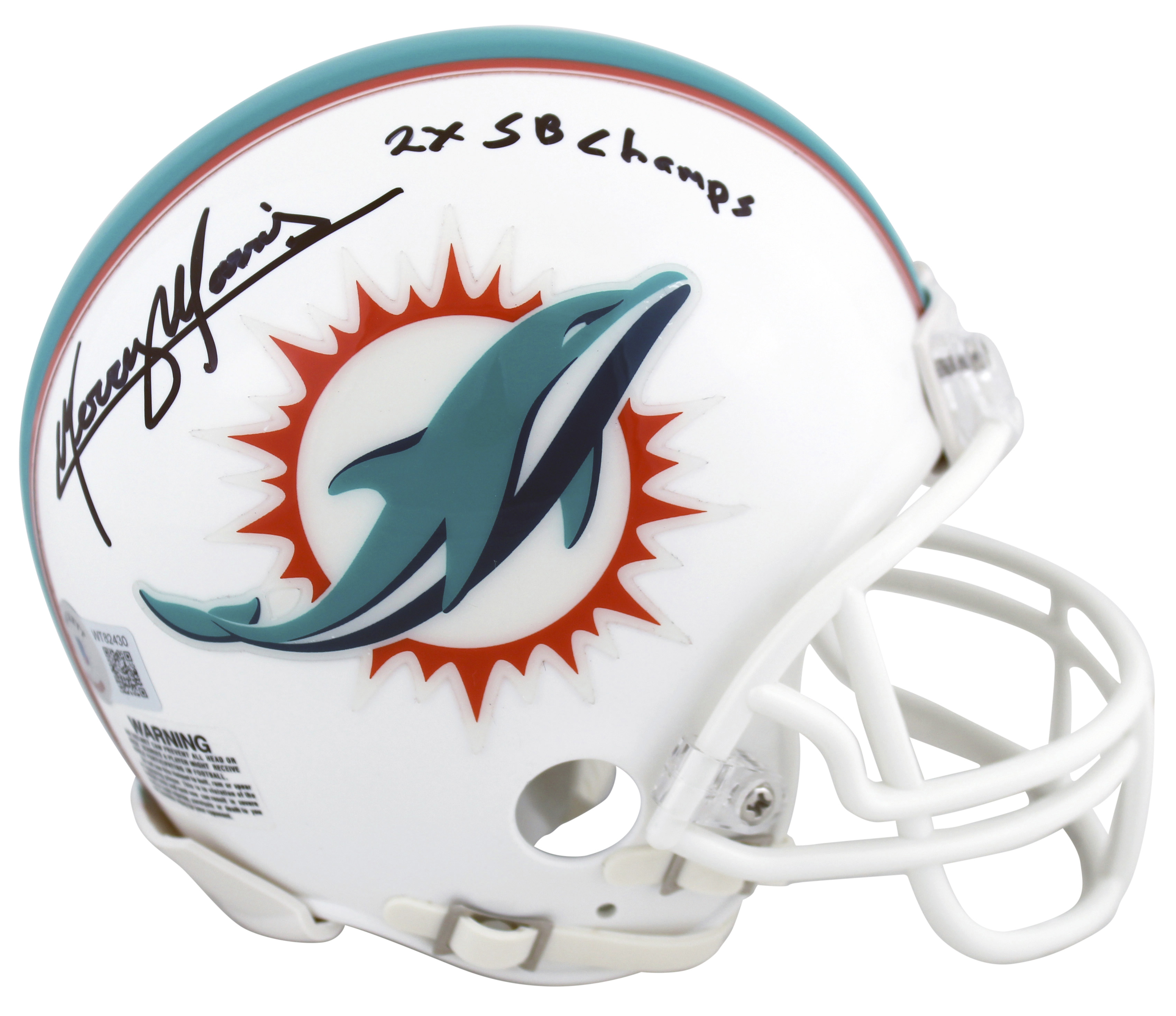 Dolphins Mercury Morris "2x SB Champ" Signed White Rep Mini Helmet BAS Witnessed