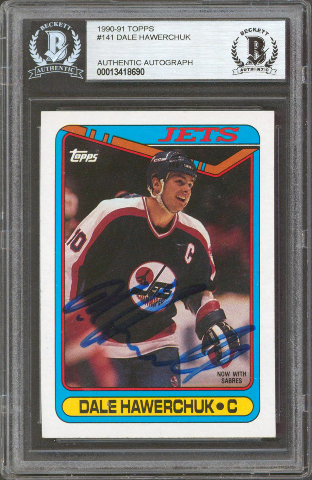 Jets Dale Hawerchuk Authentic Signed 1990 Topps #141 Card Autographed BAS Slab