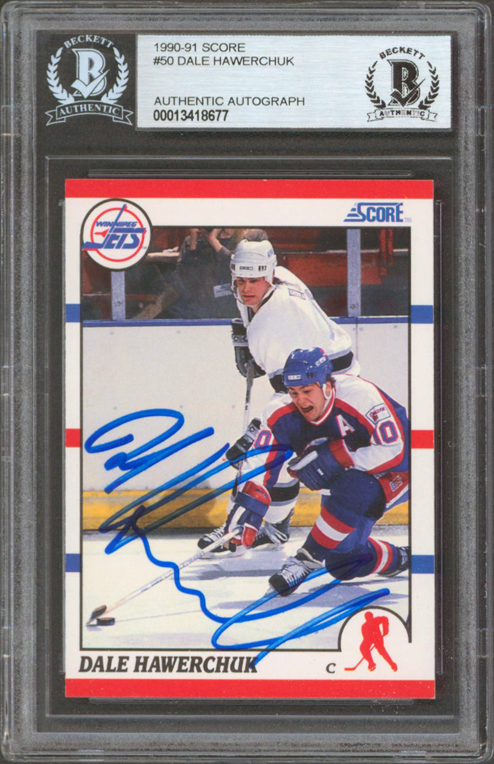 Jets Dale Hawerchuk Authentic Signed 1990 Score #50 Card Autographed BAS Slabbed