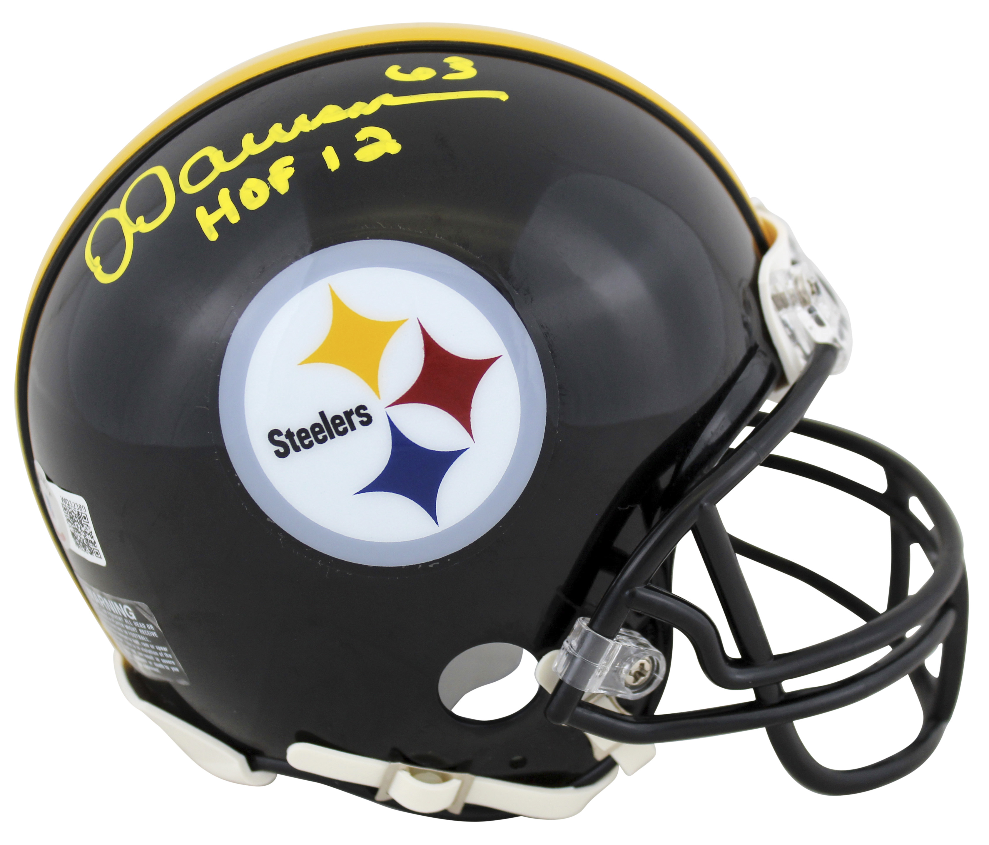 Steelers Dermontti Dawson "HOF 12" Signed Black Rep Mini Helmet BAS Witnessed