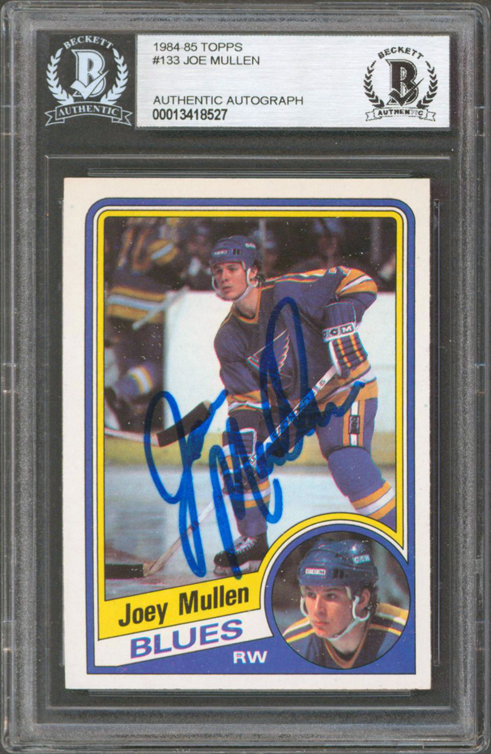 Blues Joe Mullen Authentic Signed 1984 Topps #133 Card Autographed BAS Slabbed