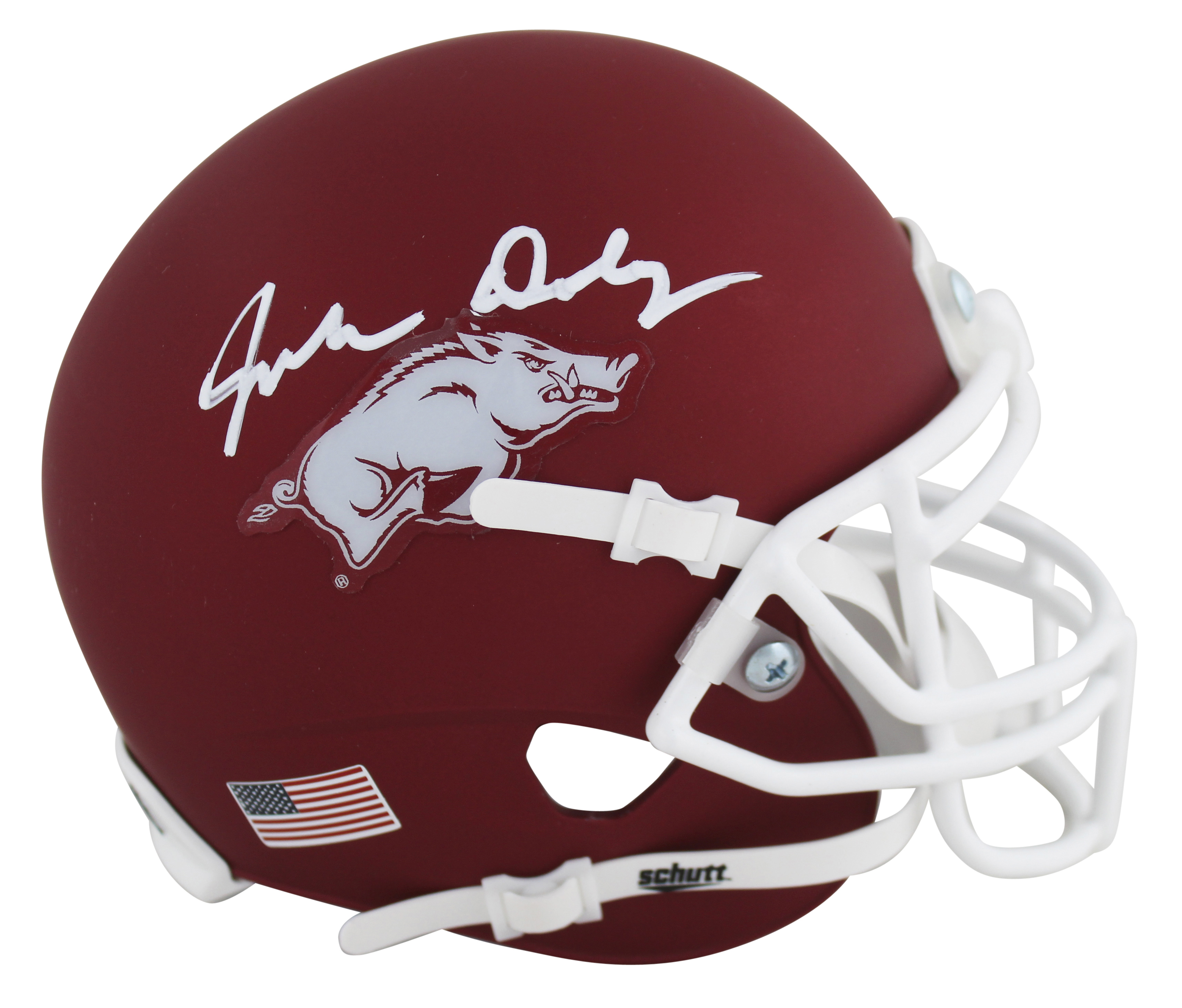 Arkansas John Daly Authentic Signed Maroon Schutt Mini Helmet BAS Witnessed