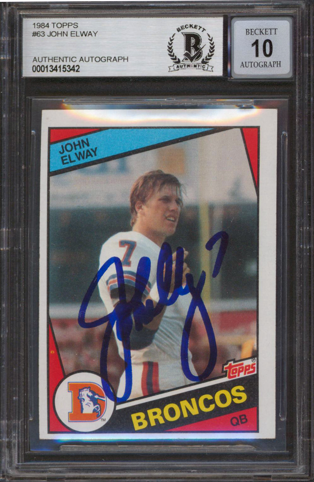 Broncos John Elway Signed 1984 Topps #63 Rookie Card Auto Graded 10! BAS Slabbed