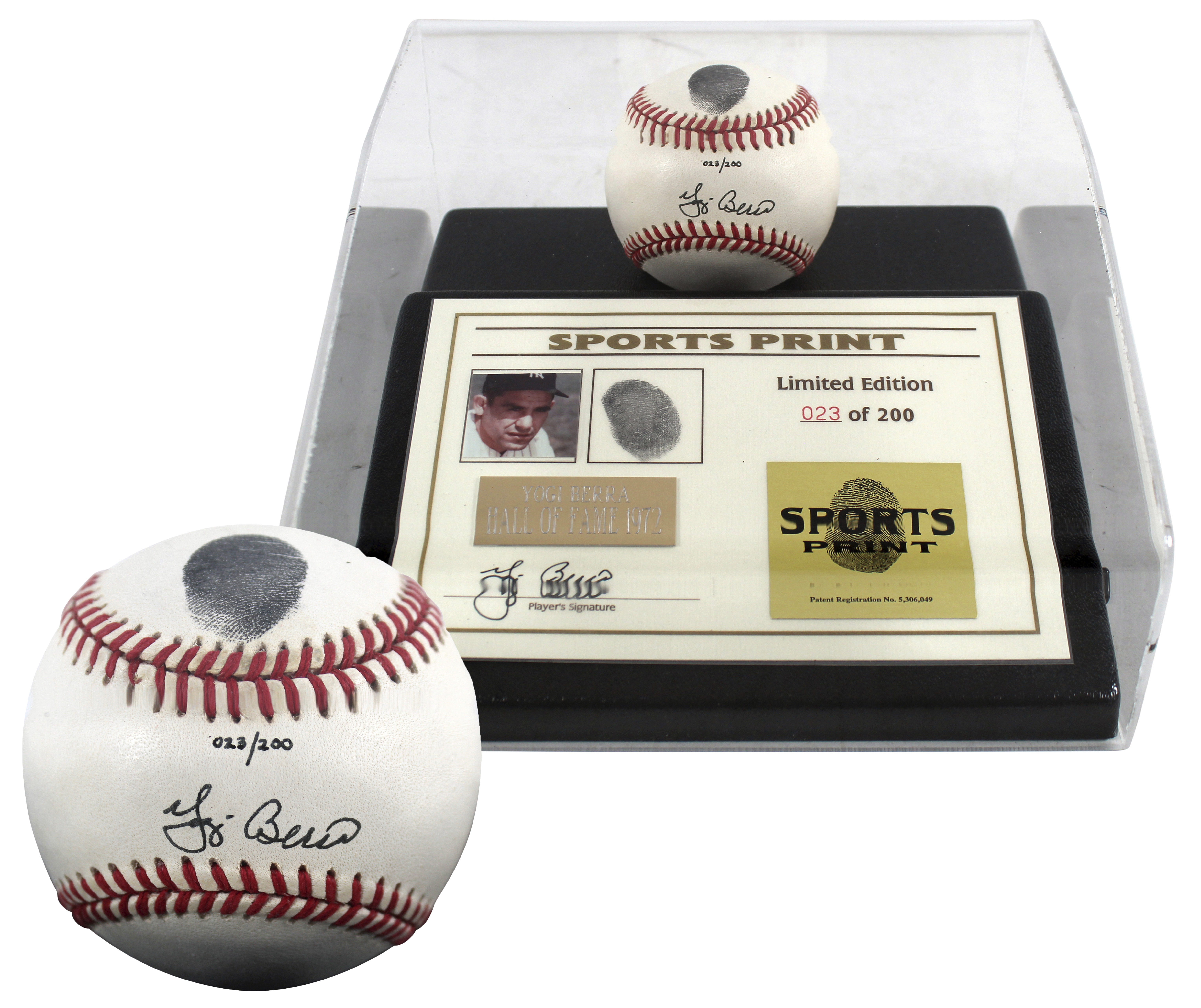 Yankees Yogi Berra Signed Thumbprint Baseball LE #'d/200 w/ Display Case BAS