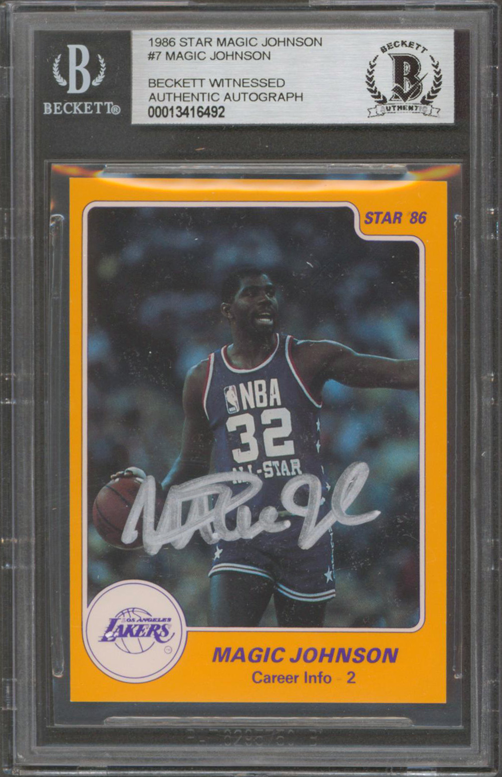 Lakers Magic Johnson Authentic Signed 1986 Star MJ #7 Card BAS Slabbed