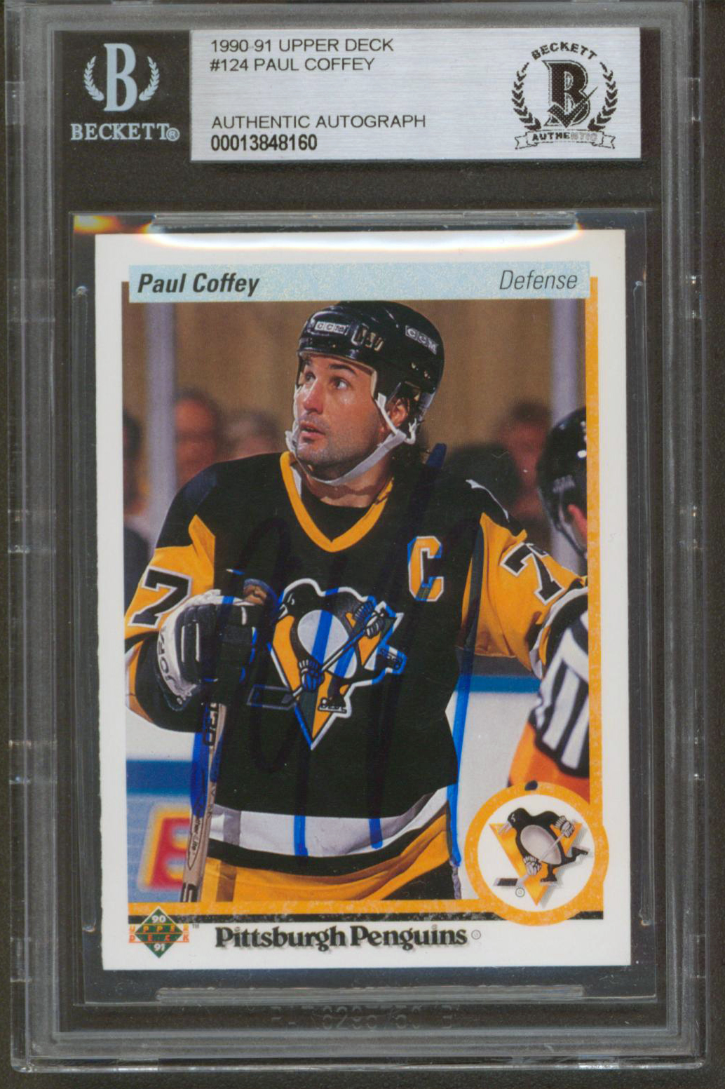 Penguins Paul Coffey Authentic Signed 1990 Upper Deck #124 Card BAS Slabbed