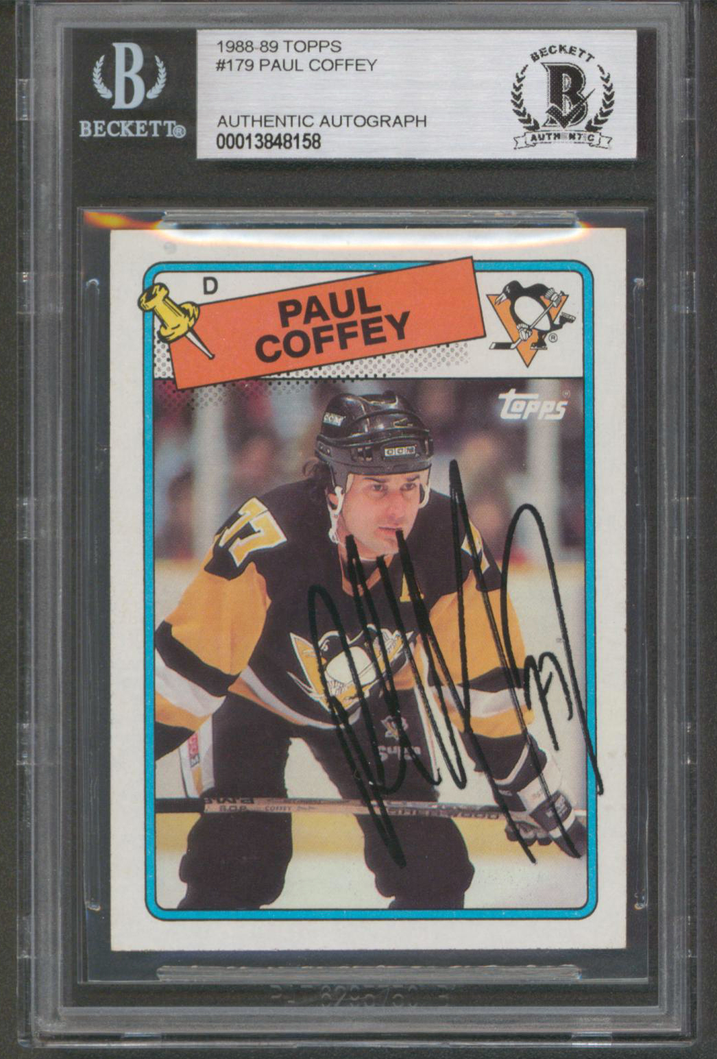 Penguins Paul Coffey Authentic Signed 1988 Topps #179 Card BAS Slabbed