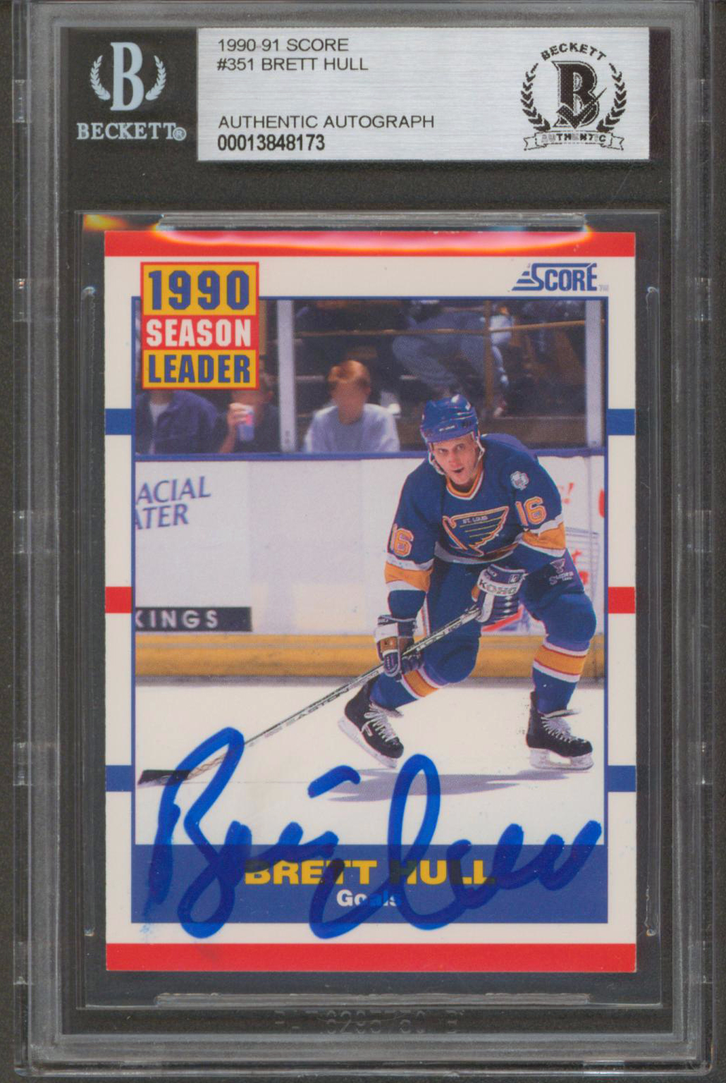 Blues Brett Hull Authentic Signed 1990 Score #351 Card Autographed BAS Slabbed