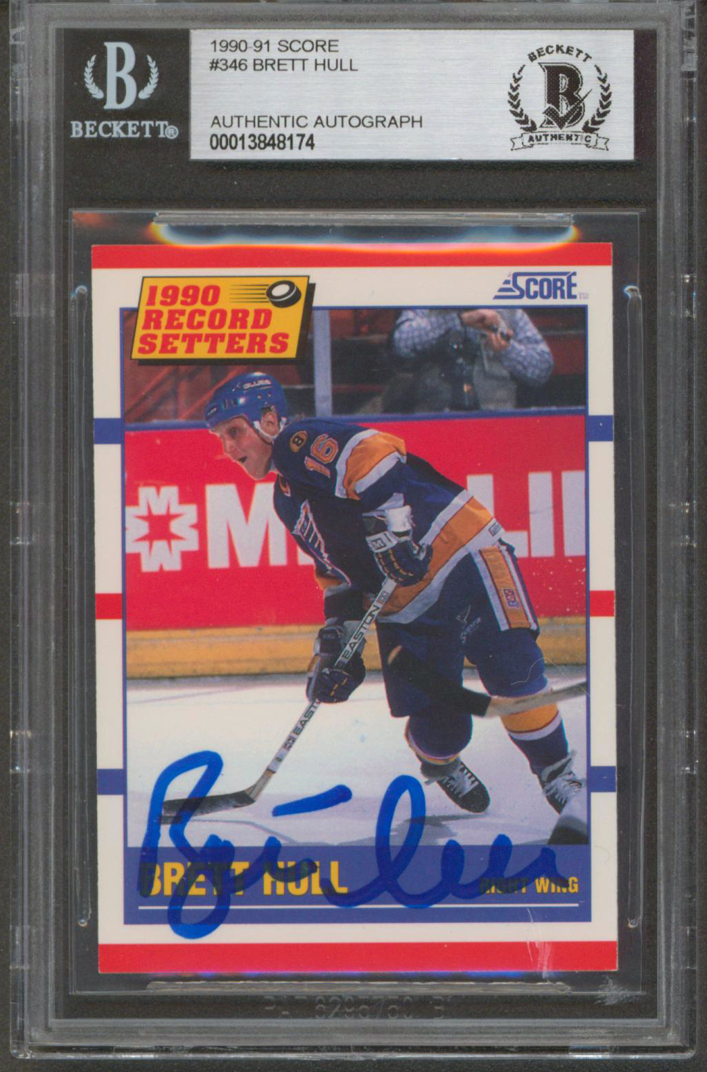 Blues Brett Hull Authentic Signed 1990 Score #346 Card Autographed BAS Slabbed
