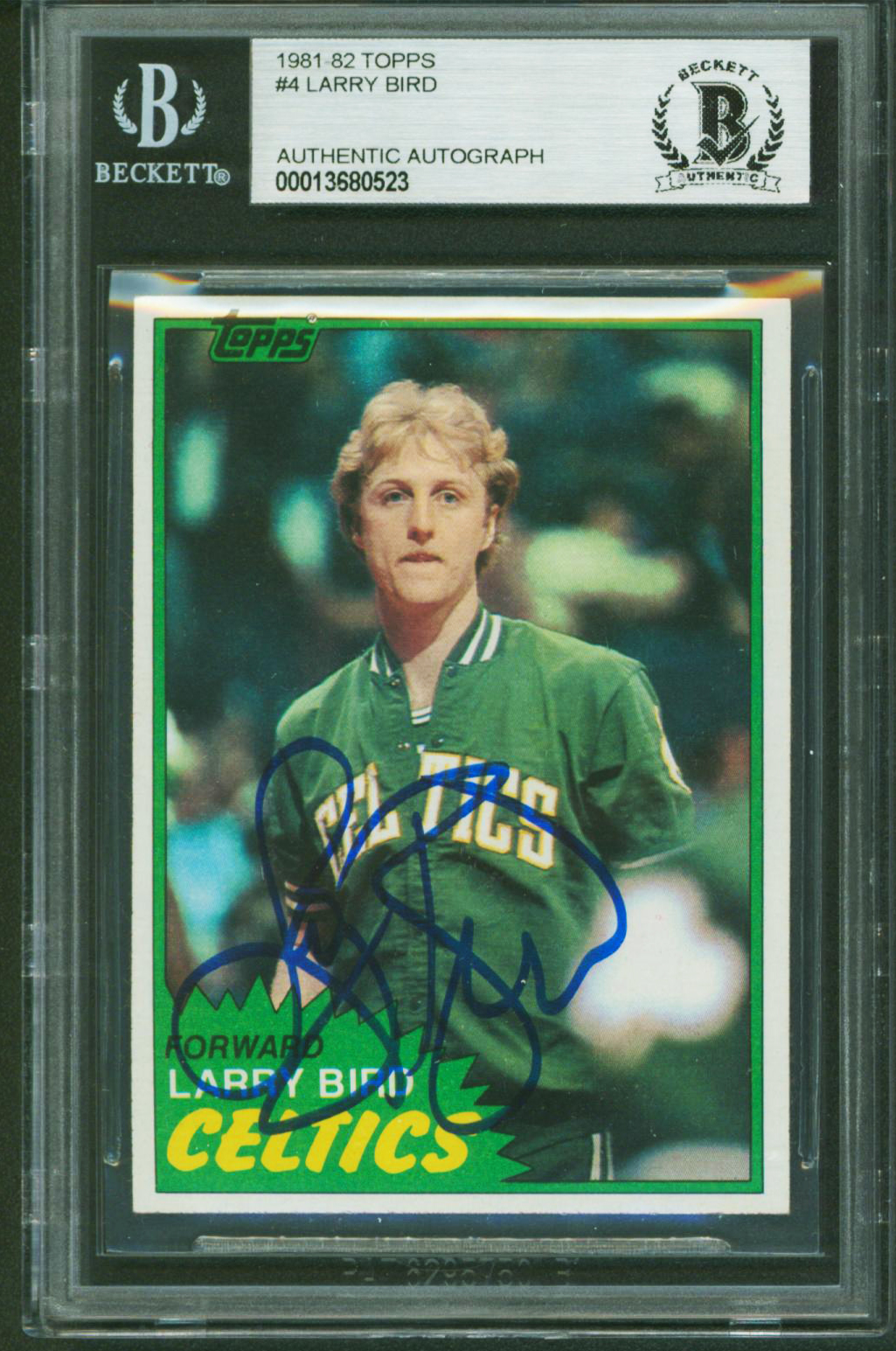 Celtics Larry Bird Authentic Signed 1981 Topps #4 Card Autographed BAS Slabbed 3