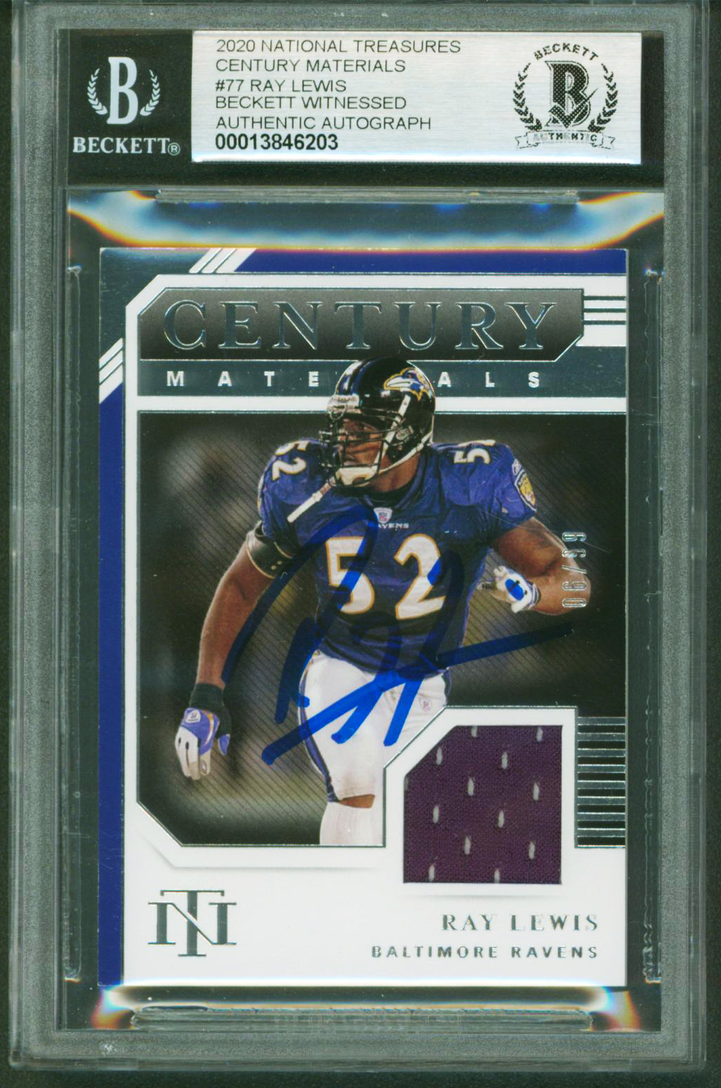 Ray Lewis Signed 2020 National Treasures Century #77 06/99 Card Auto 10 BAS Slab