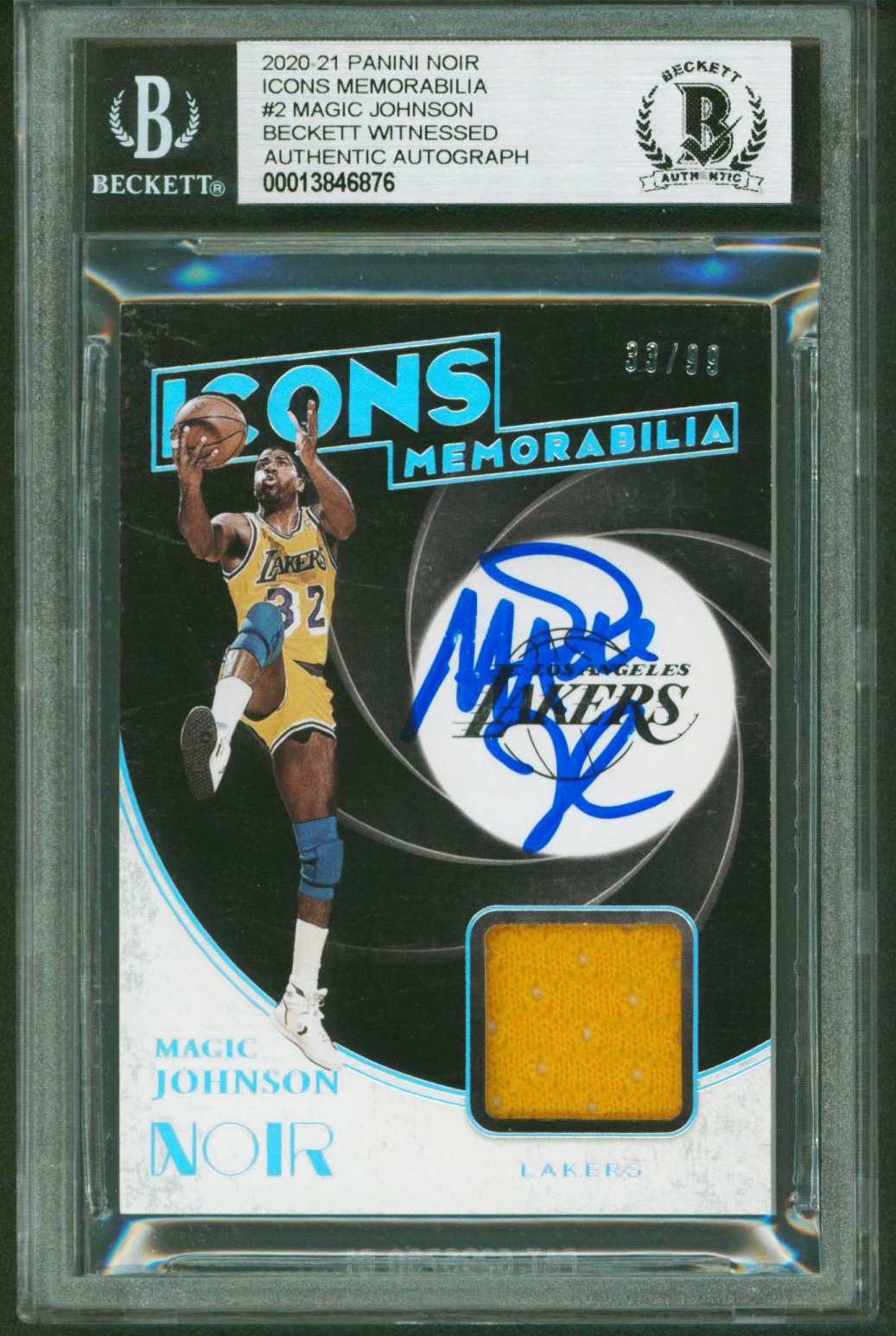 Magic Johnson Signed 2020 Panini Noir Icons #2 33/99 Card Auto 10! BAS Slabbed