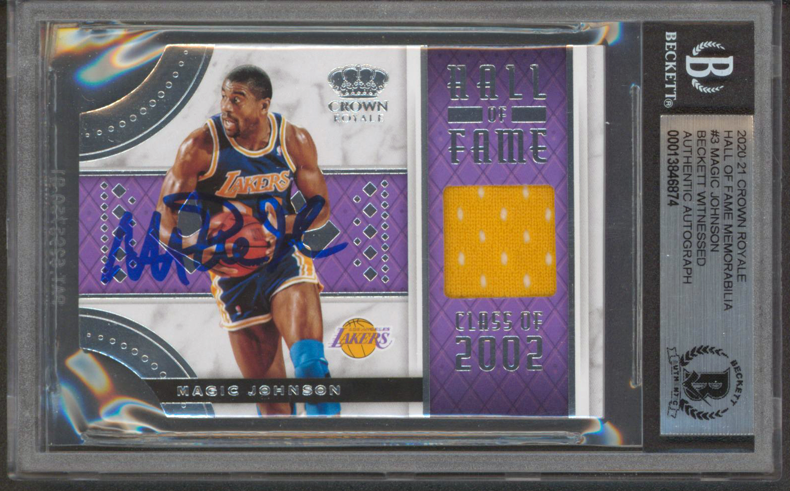 Lakers Magic Johnson Signed 2020 Crown Royale HOF Mem #3 Card BAS Slabbed 1