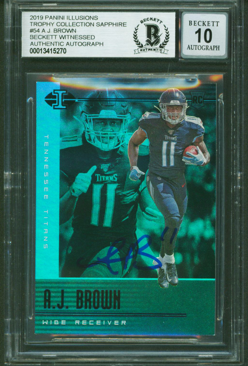 A.J. Brown Signed 2019 Panini Illusions TC Sapphire #54 RC Card Auto 10 BAS Slab