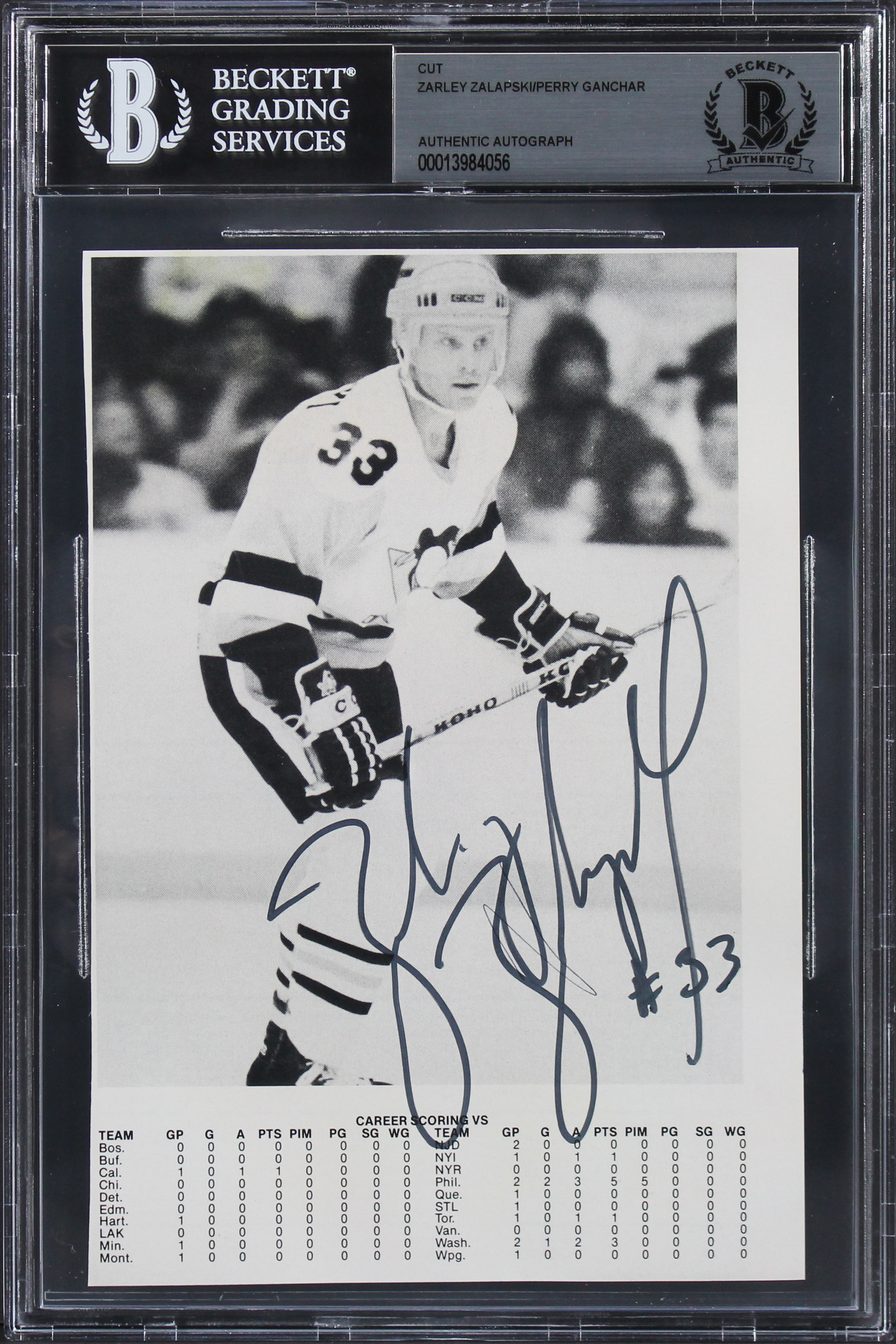 Penguins Zarley Zalapski & Perry Ganchar Signed 4.75x7 Cut Sig BAS Slabbed