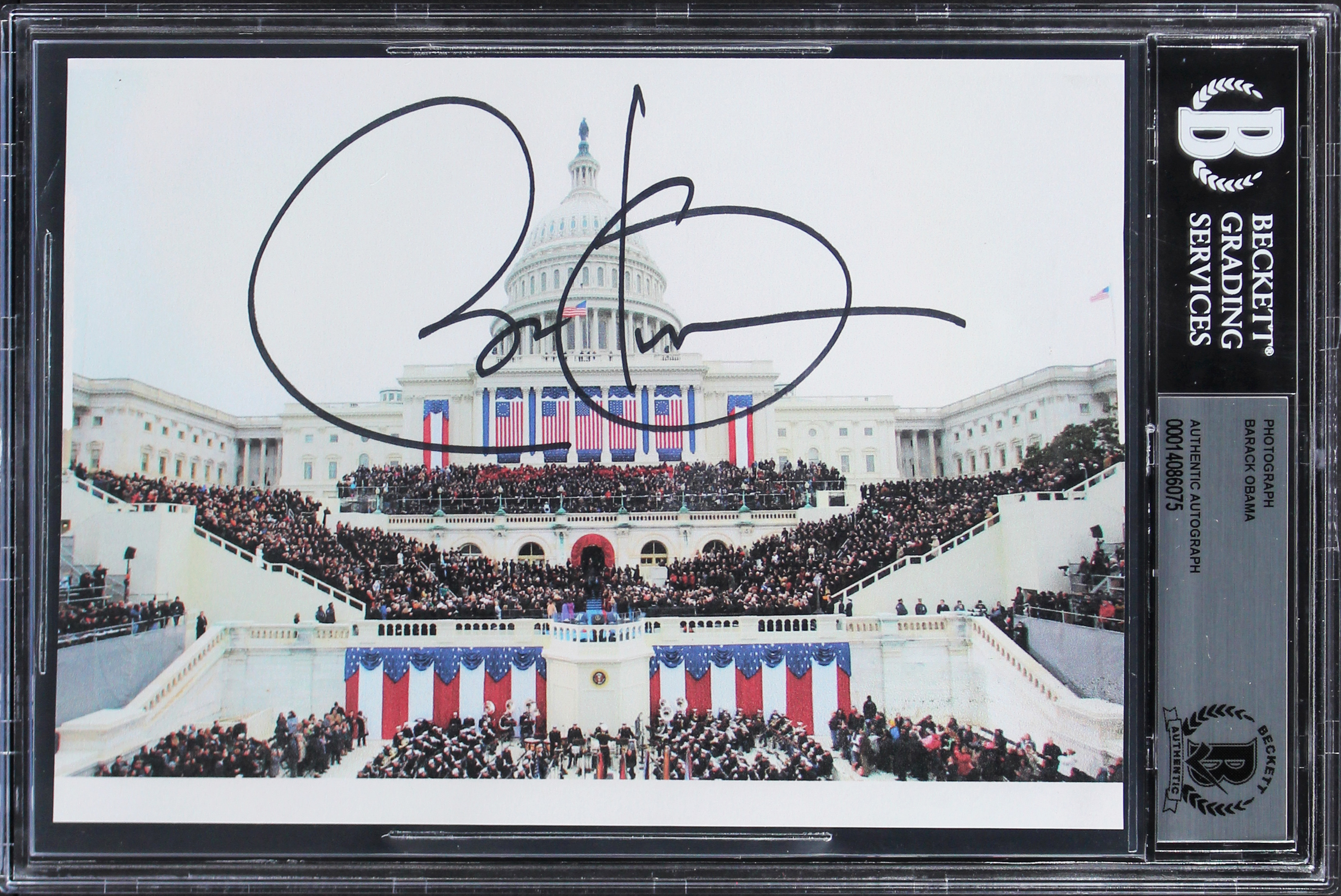 Barack Obama Authentic Signed 5x7.35 Photo Auto Graded Gem Mint 10! BAS Slabbed