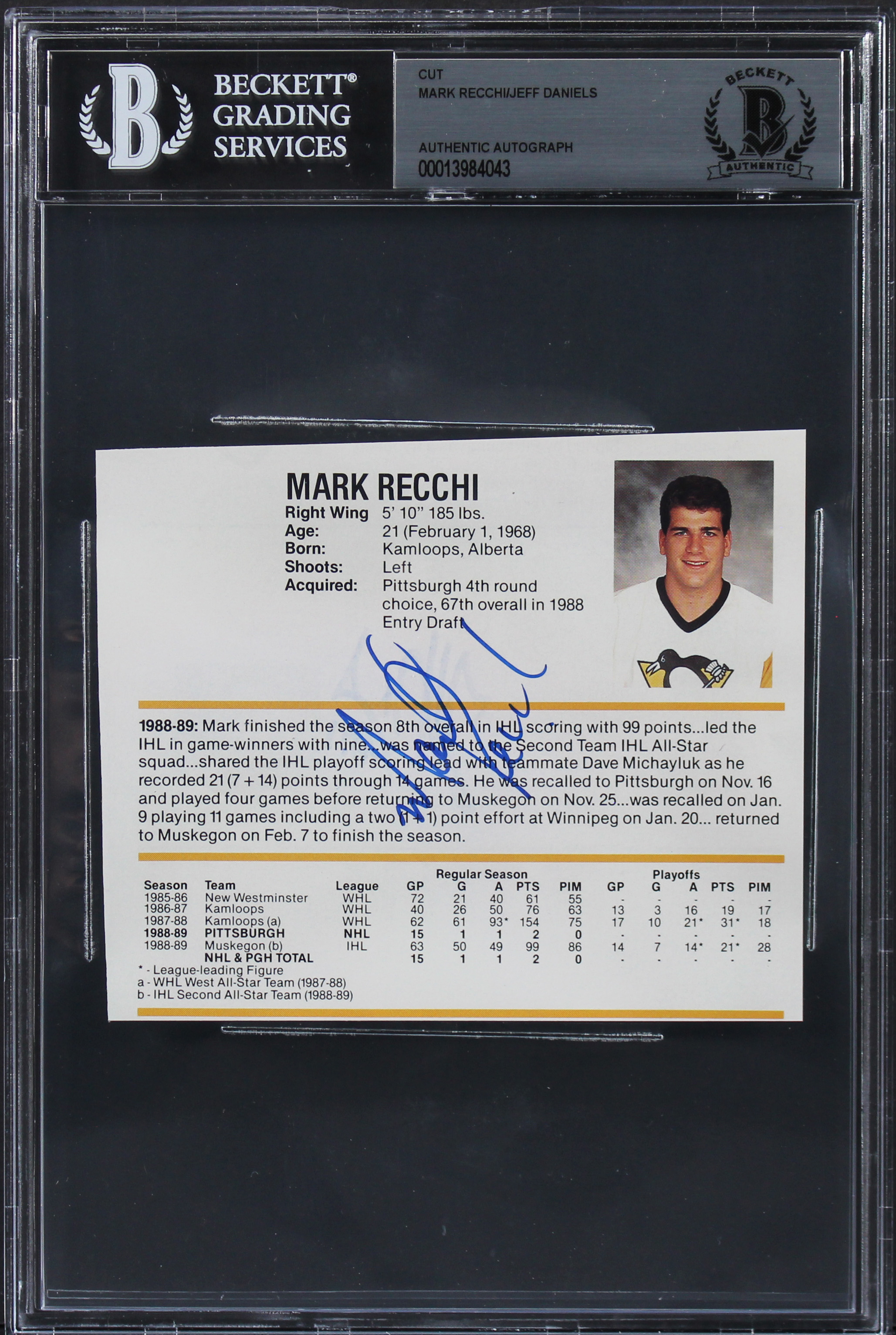 Penguins Mark Recchi & Jeff Daniels Authentic Signed 4.75x4 Cut Sig BAS Slabbed