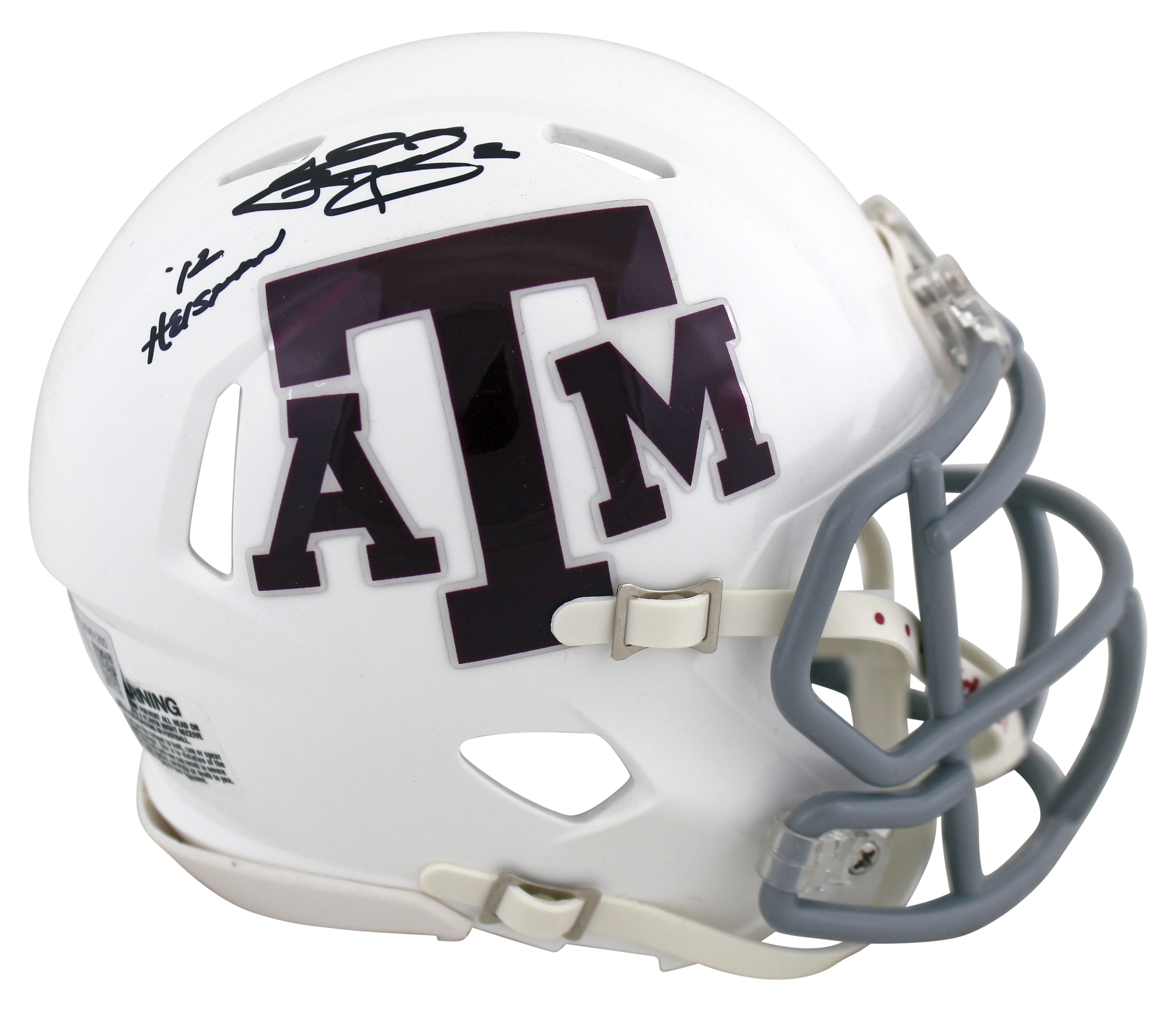 Texas A&M Johnny Manziel "12 Heisman" Signed White Speed Mini Helmet BAS Witness