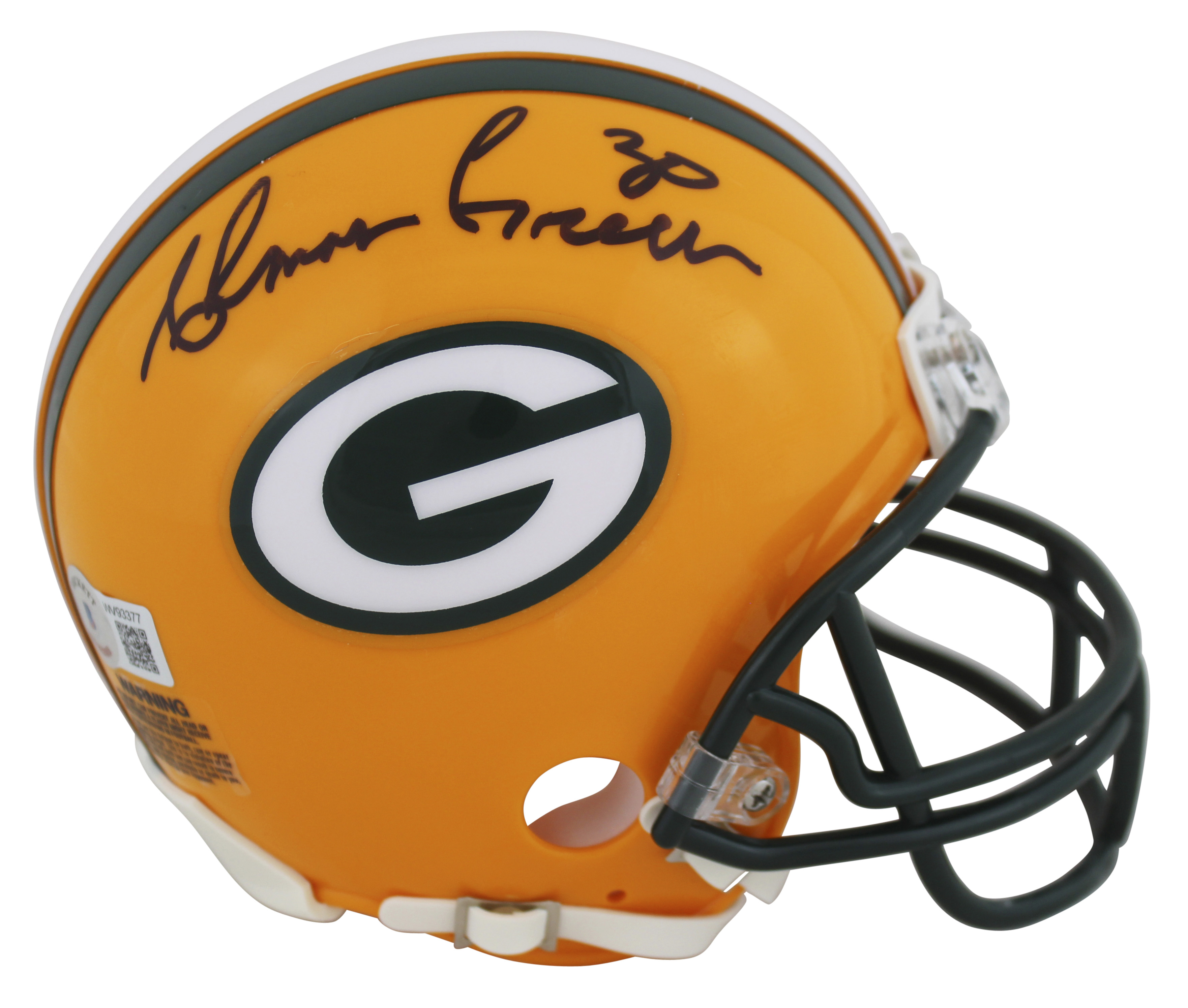 Packers Ahman Green Authentic Signed Yellow Rep Mini Helmet BAS Witnessed