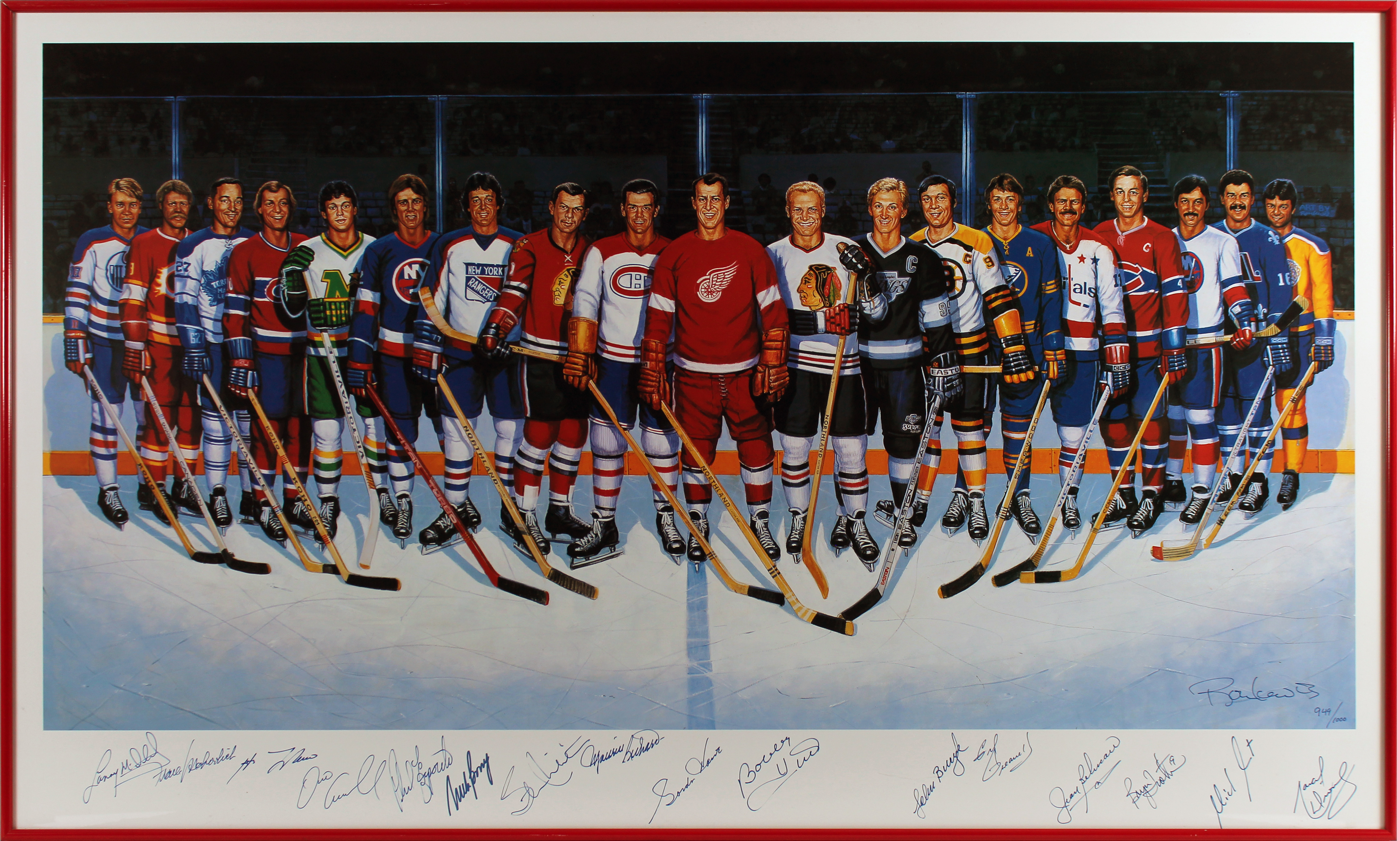 500 Goal Scorers (17) Howe, Hull, Beliveau +14 Signed & Framed 23x38 Litho BAS