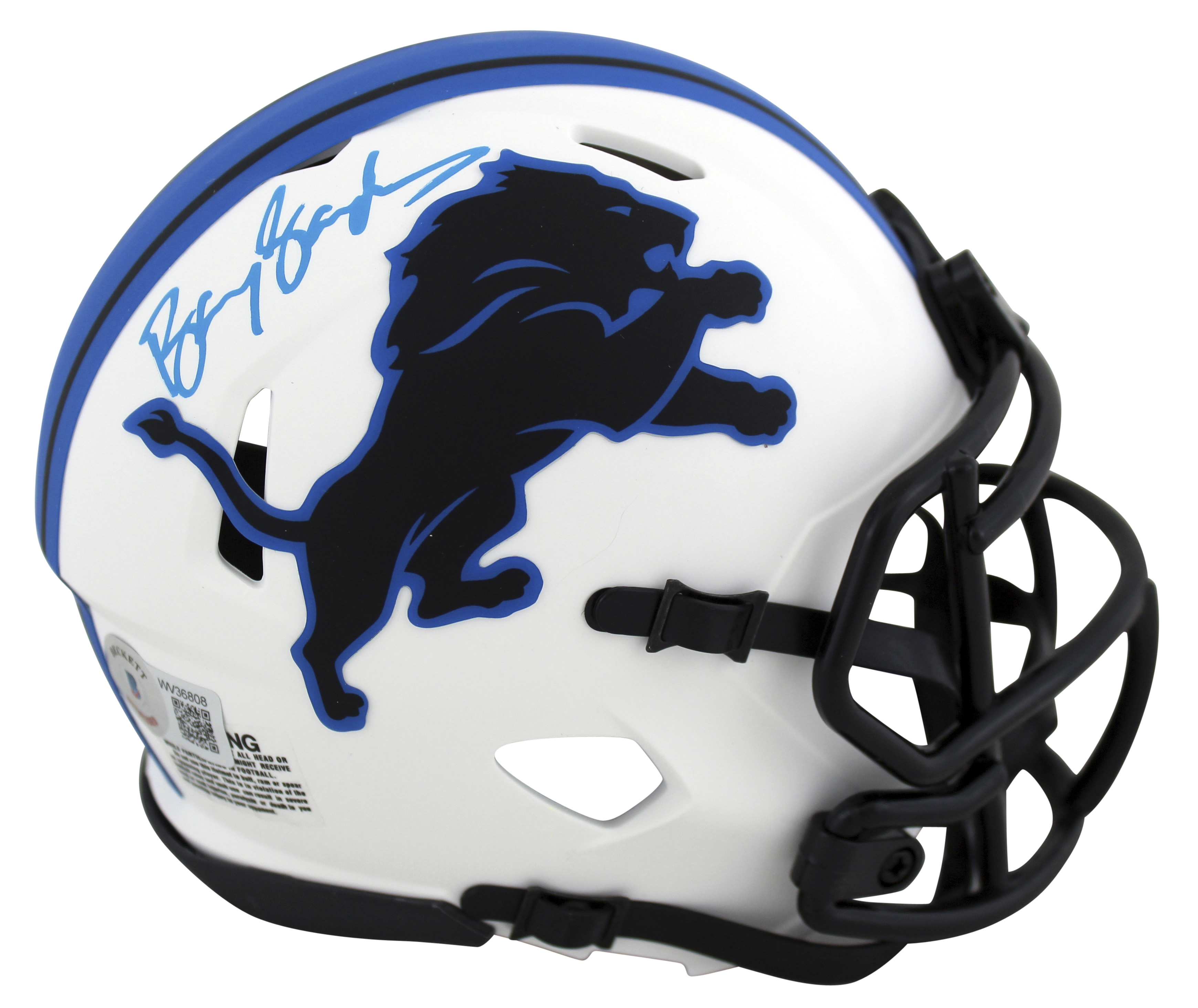 Lions Barry Sanders Authentic Signed Lunar Speed Mini Helmet BAS Witnessed