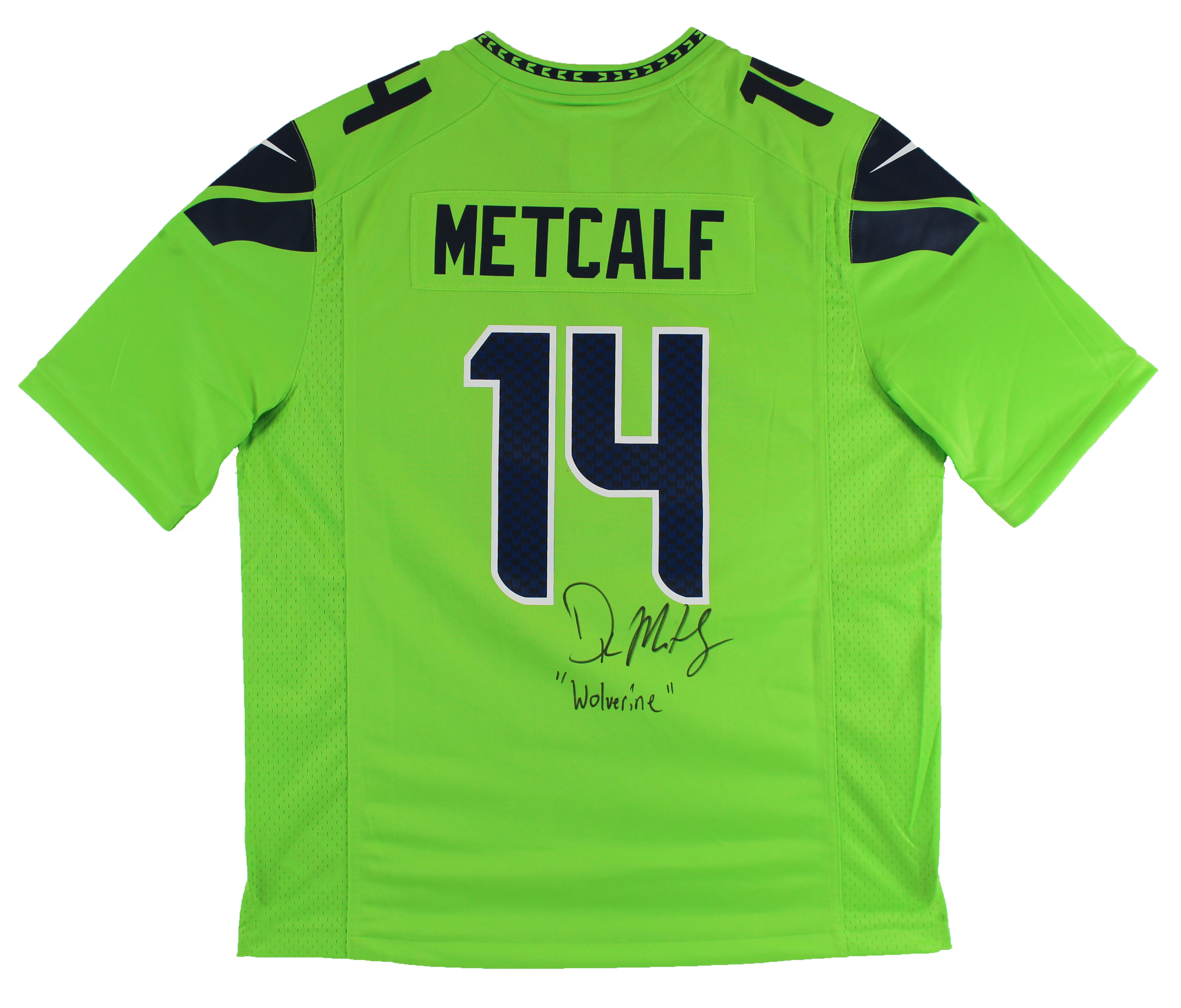 Seahawks D.K. Metcalf Authentic Signed Neon Green Nike Jersey BAS Witnessed