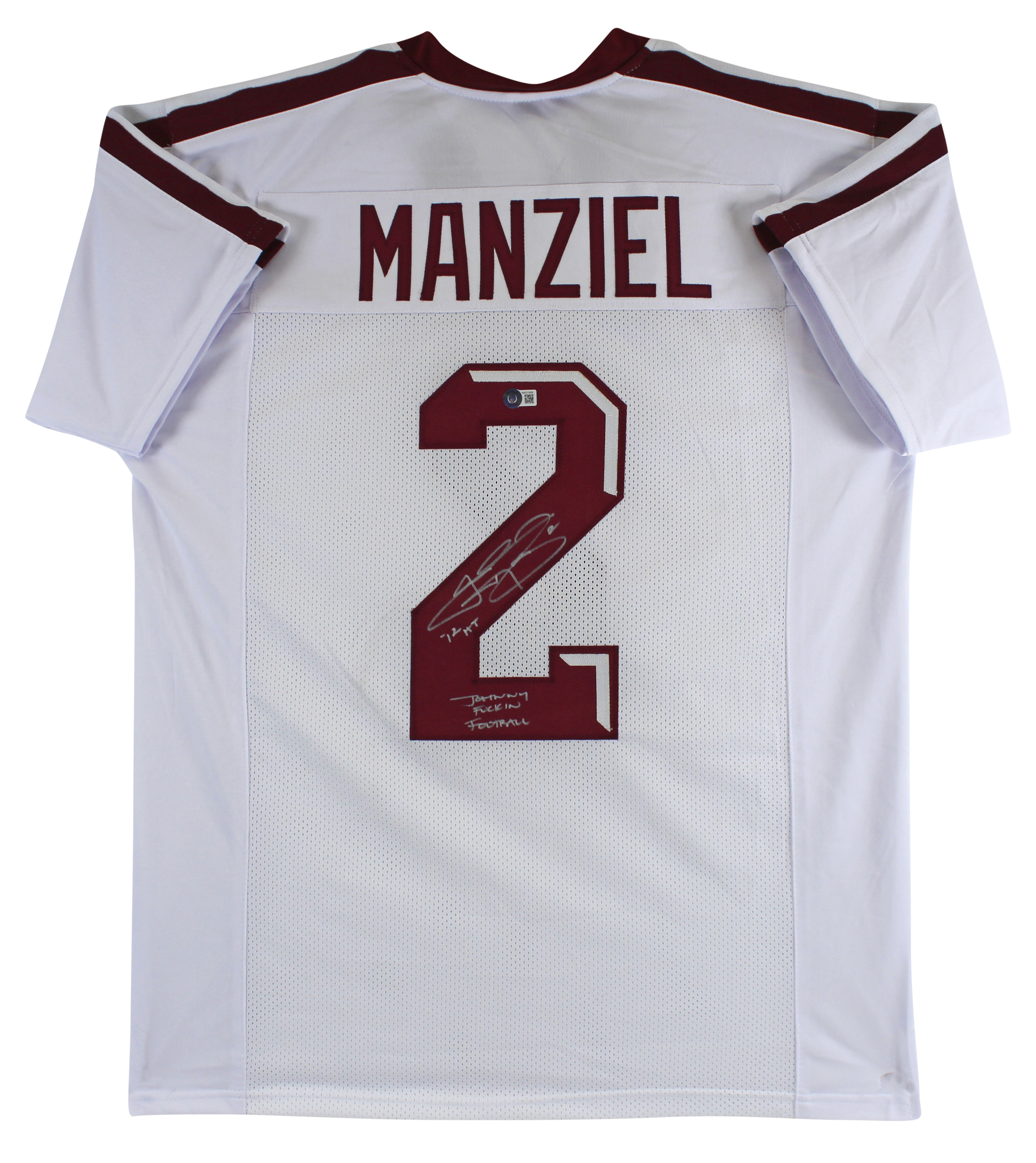 Texas A&M Johnny Manziel "2x Insc" Signed White Pro Style Jersey BAS Witnessed