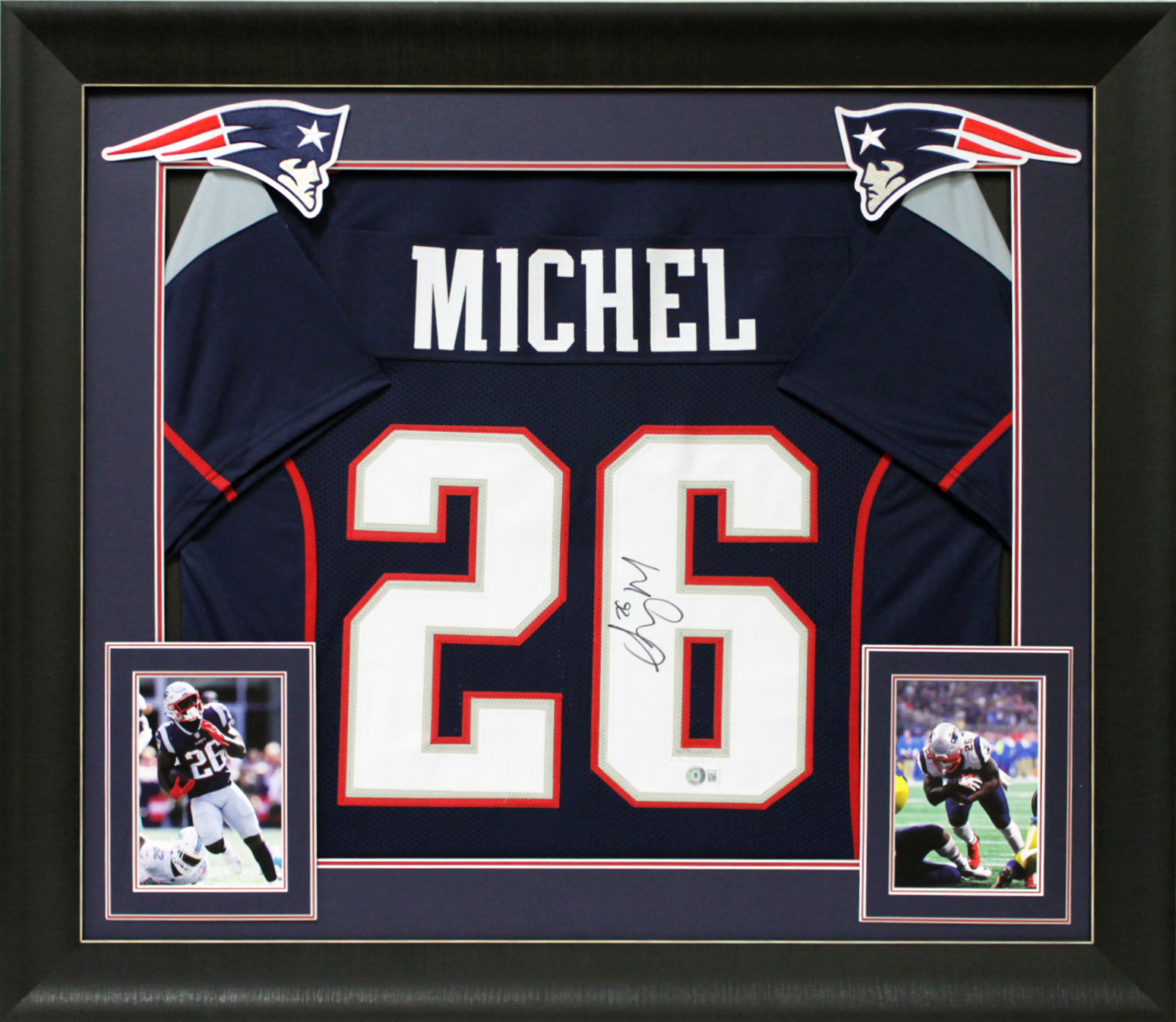 Sony Michel Authentic Signed Navy Blue Pro Style Framed Jersey BAS Witnessed
