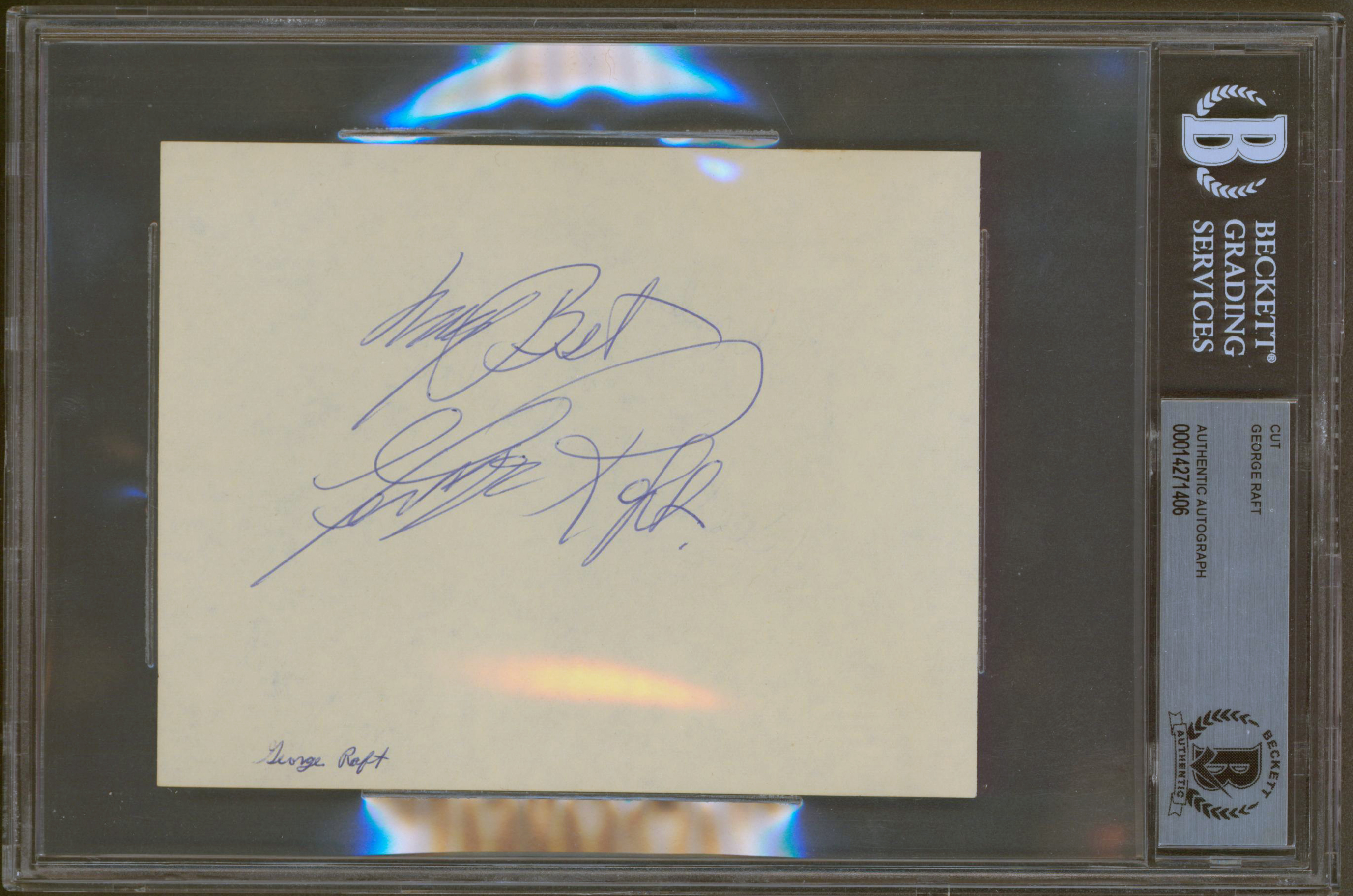 George Raft They Drive By Night "My Best" Signed 4.5 x 5.5 Cut Sig BAS Slabbed