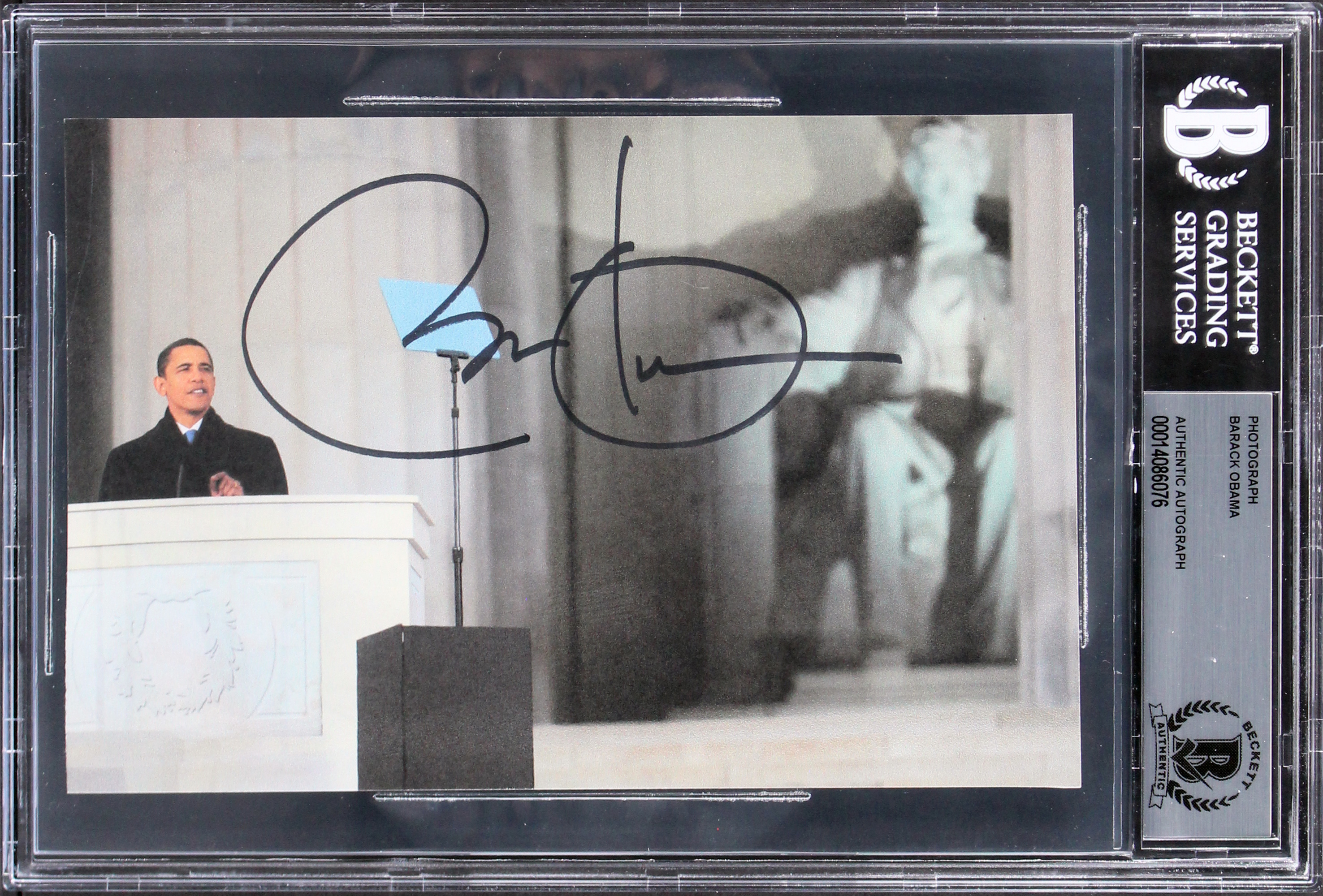 Barack Obama Authentic Signed 4.5x7 Photo Auto Graded Gem Mint 10! BAS Slabbed