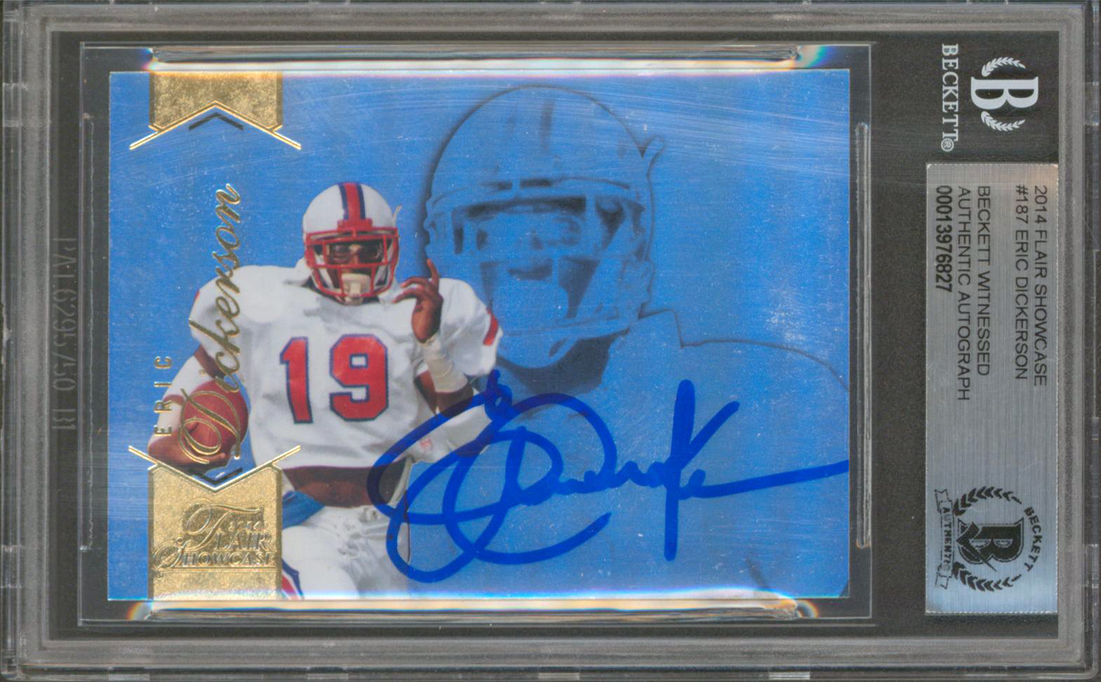 Rams Eric Dickerson Authentic Signed 2014 Flair Showcase #187 Card BAS Slabbed