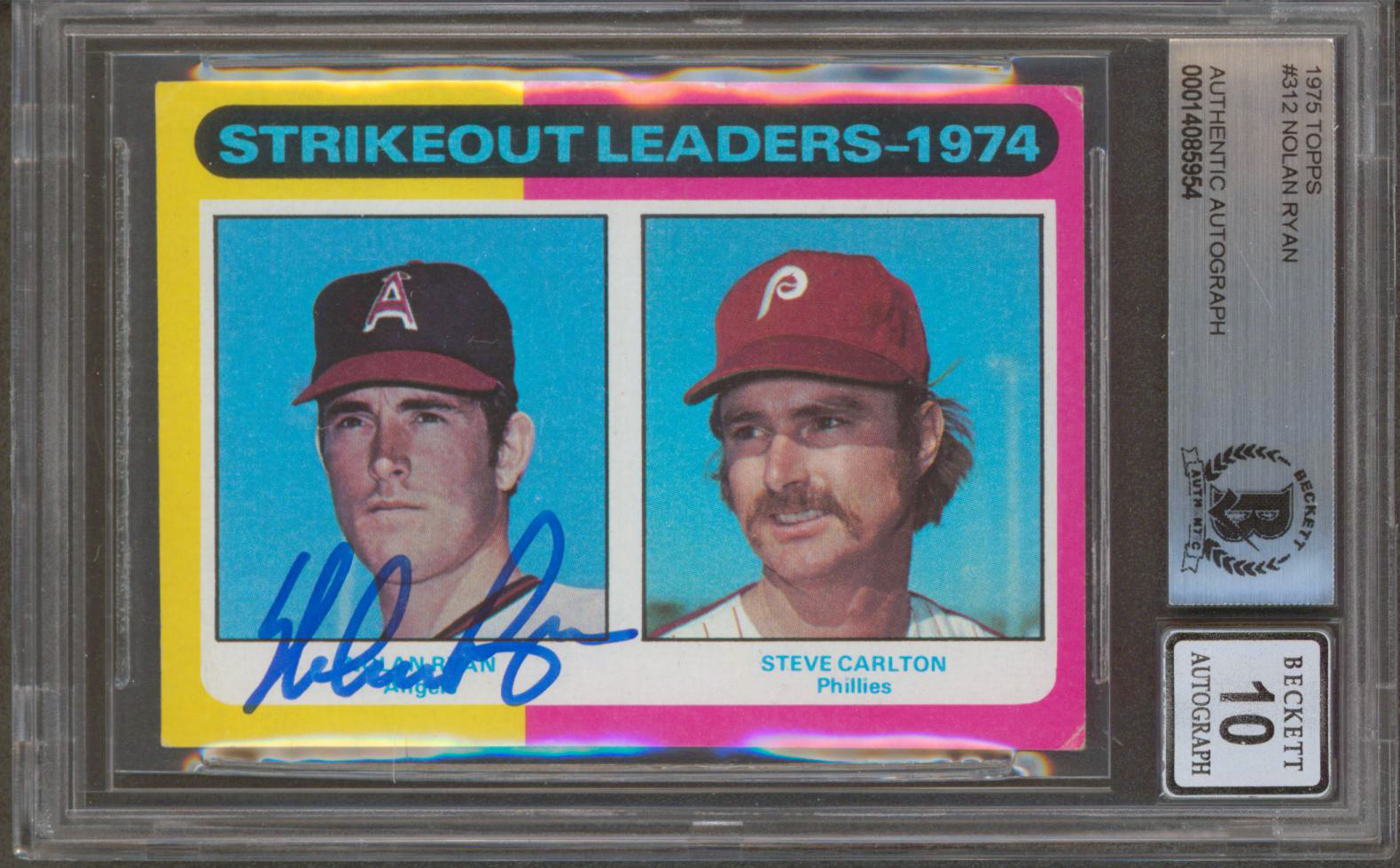 Angels Nolan Ryan Authentic Signed 1975 Topps #312 Card Auto Grade 10 BAS Slab 1