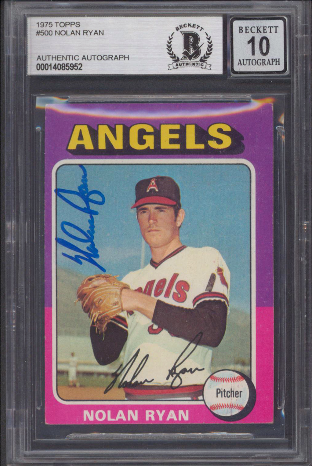 Angels Nolan Ryan Authentic Signed 1975 Topps #500 Card Auto Grade 10 BAS Slab 1
