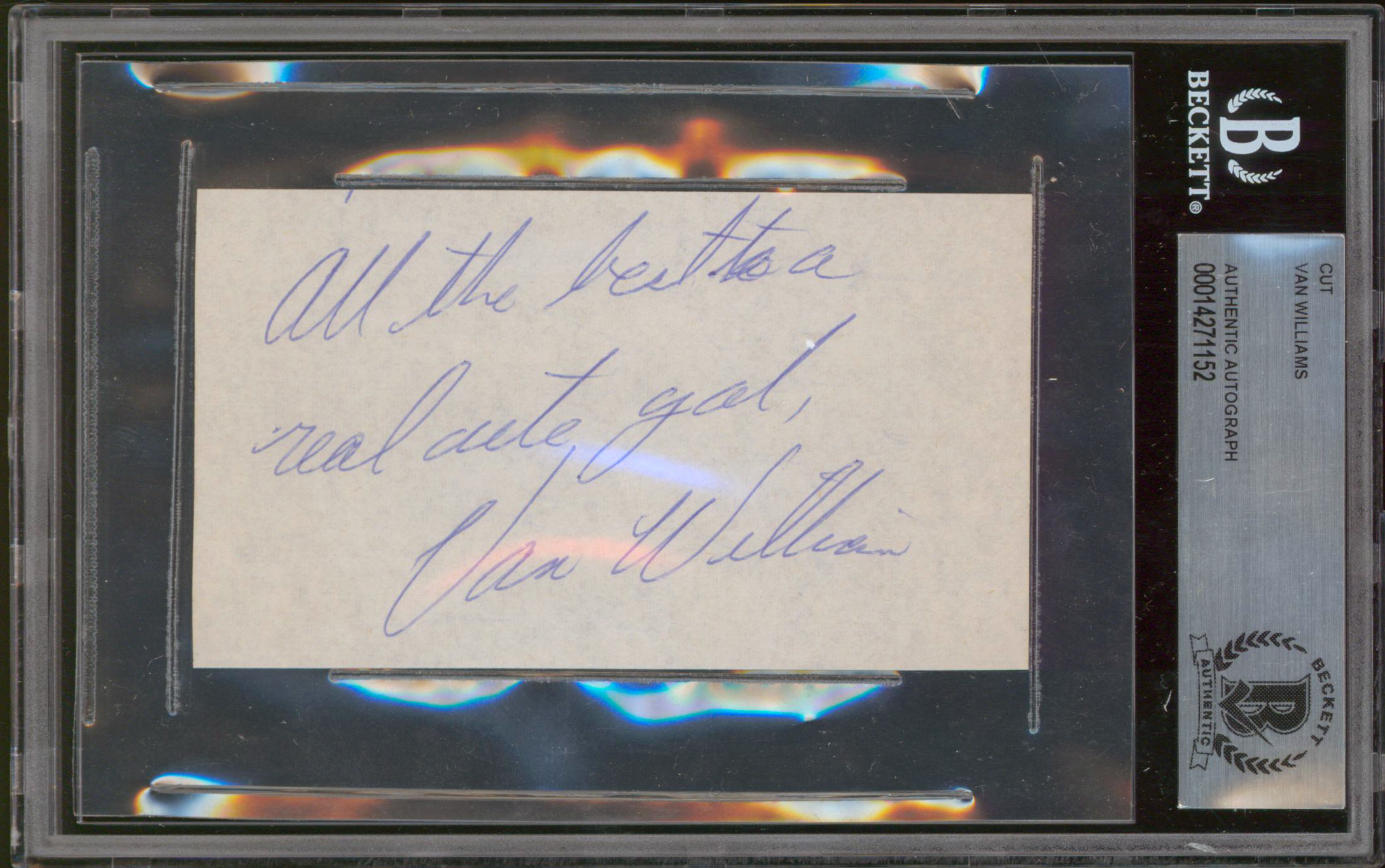 Van Williams The Green Hornet "All the best" Signed 2.5x4.5 Cut Sig BAS Slabbed