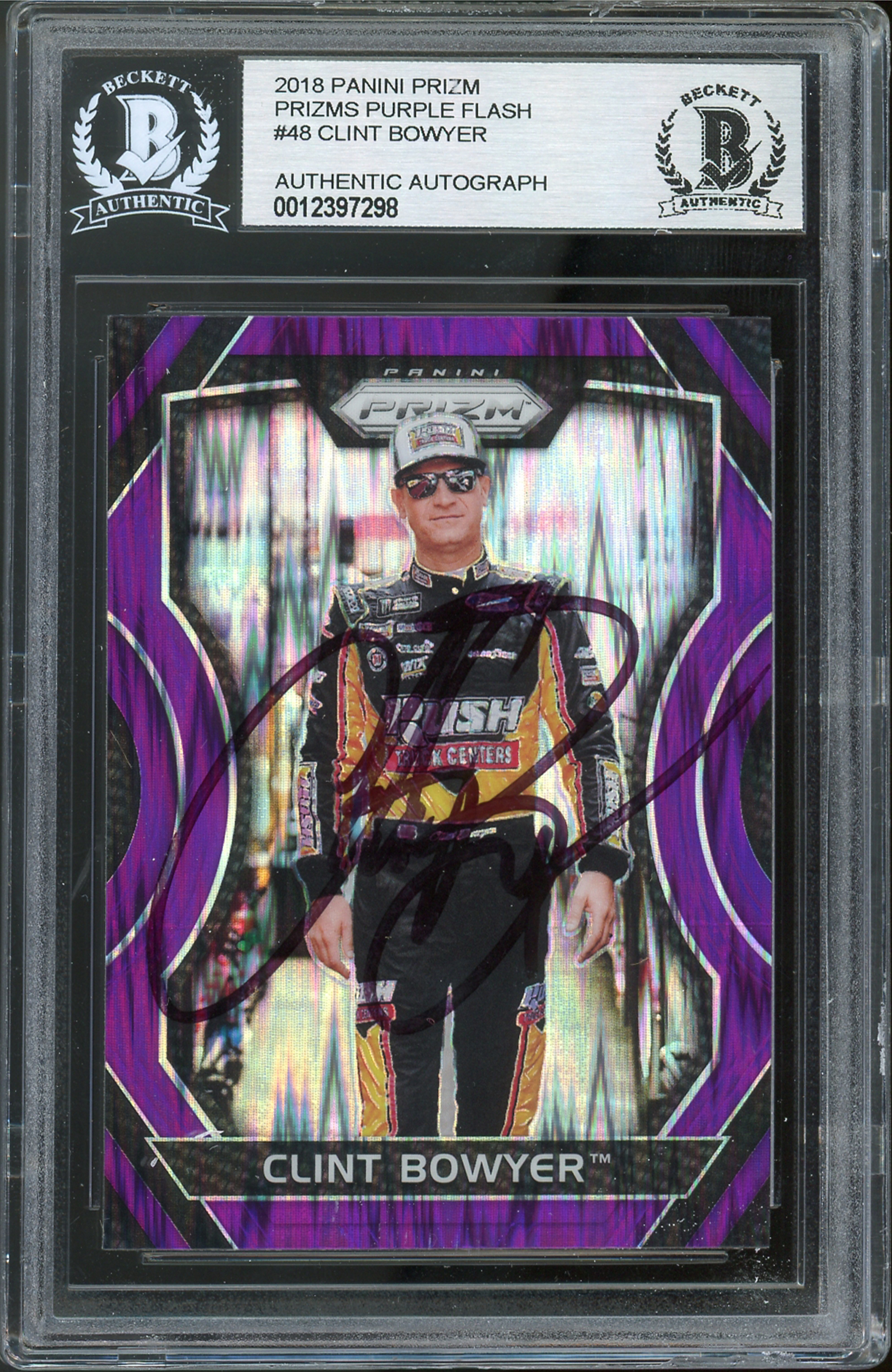 NASCAR Clint Bowyer Signed 2018 Panini Prizm Purple Flash #48 Card BAS Slabbed