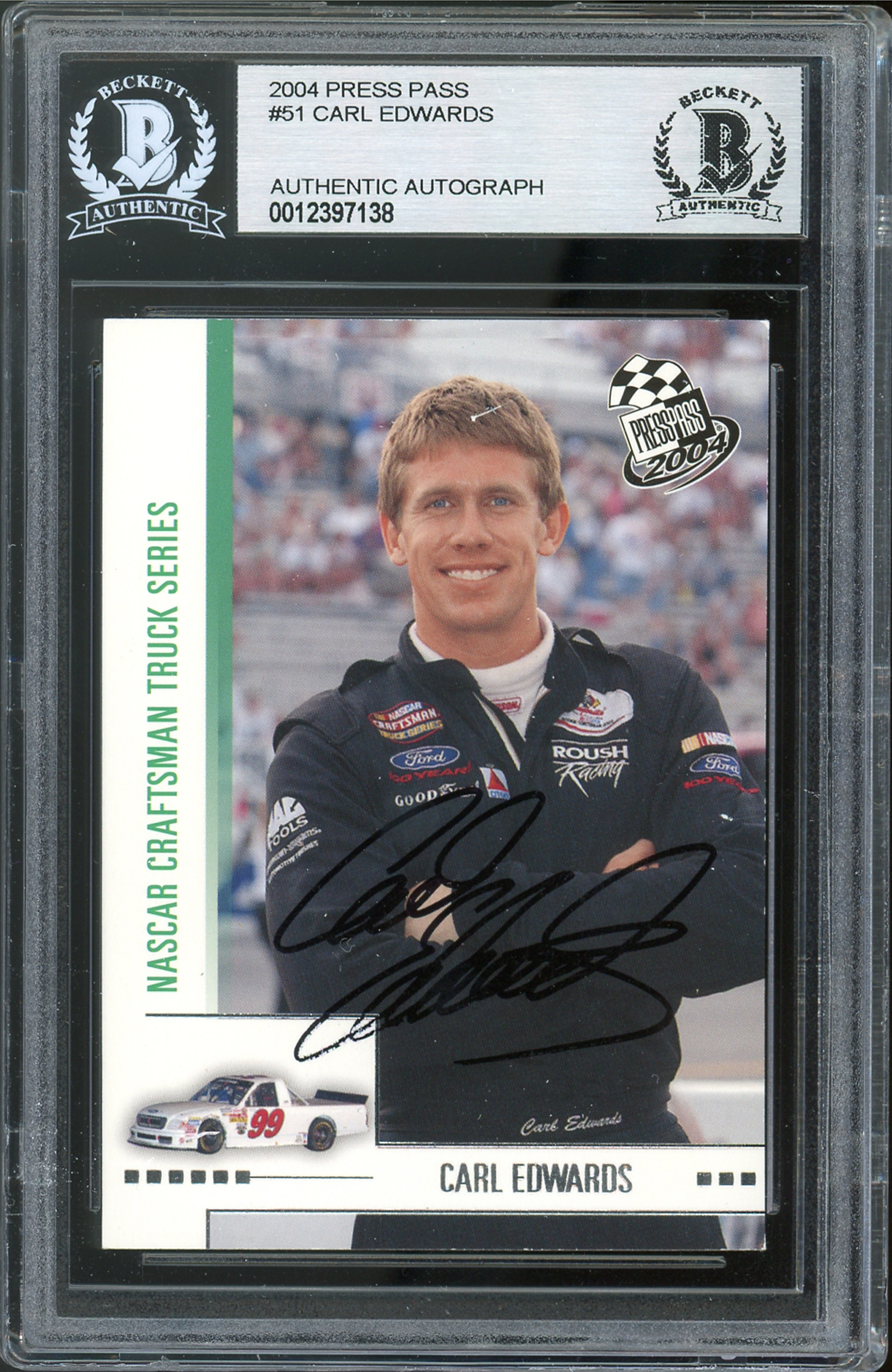 NASCAR Carl Edwards Authentic Signed 2004 Press Pass #51 Card BAS Slabbed