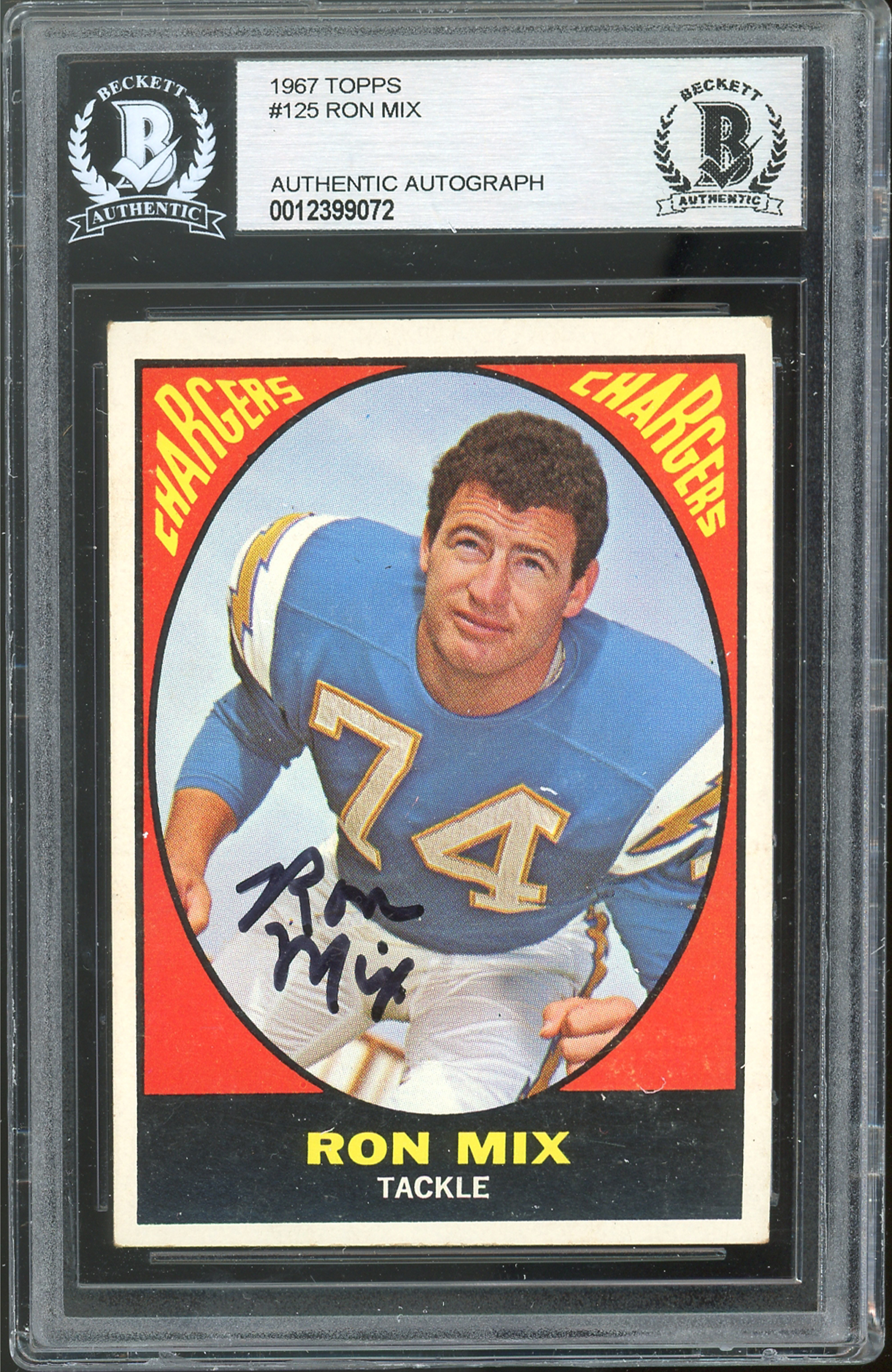 Chargers Ron Mix Authentic Signed 1967 Topps #125 Card BAS Slabbed