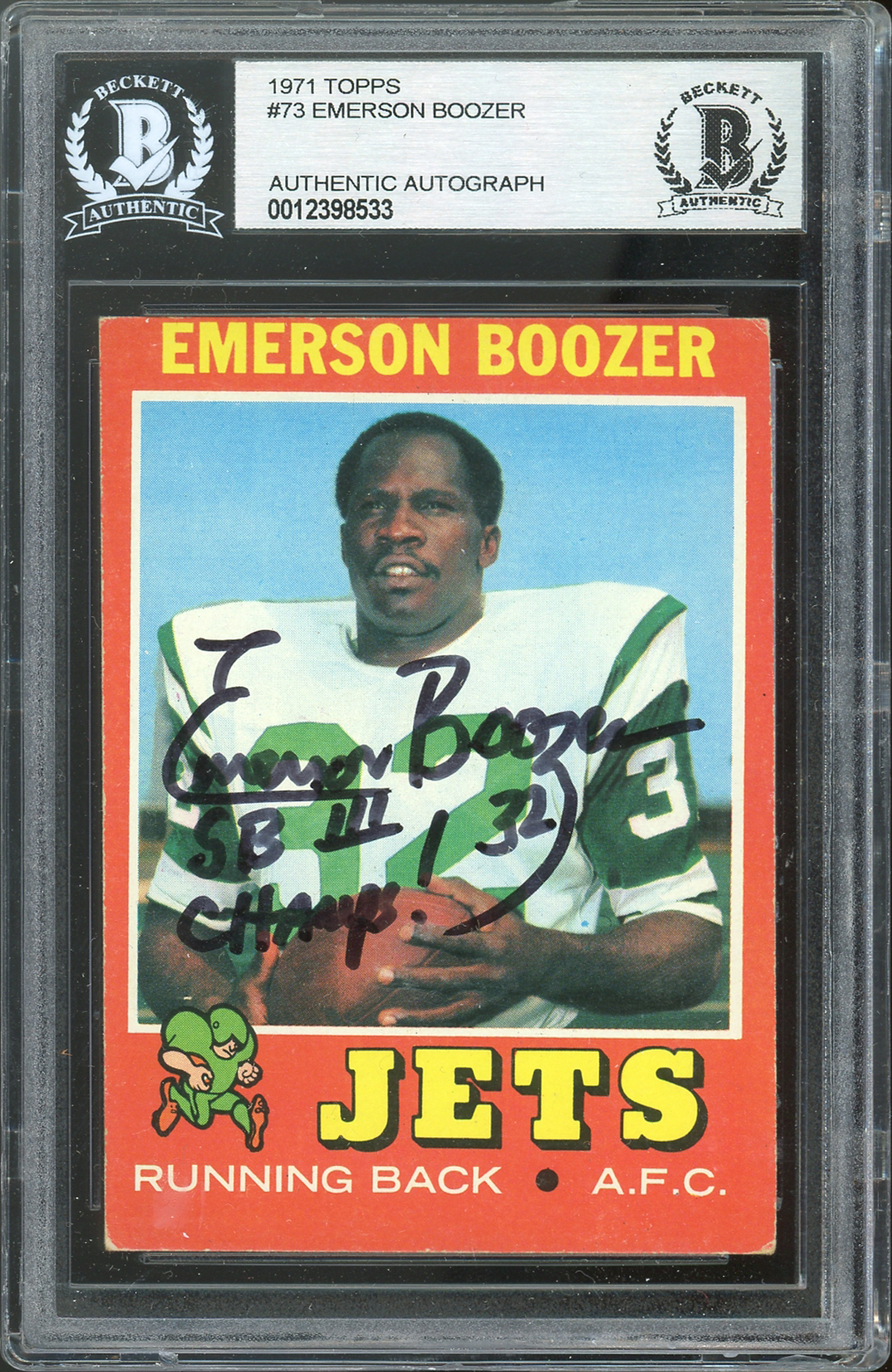 Jets Emerson Boozer Authentic Signed 1971 Topps #73 Card BAS Slabbed