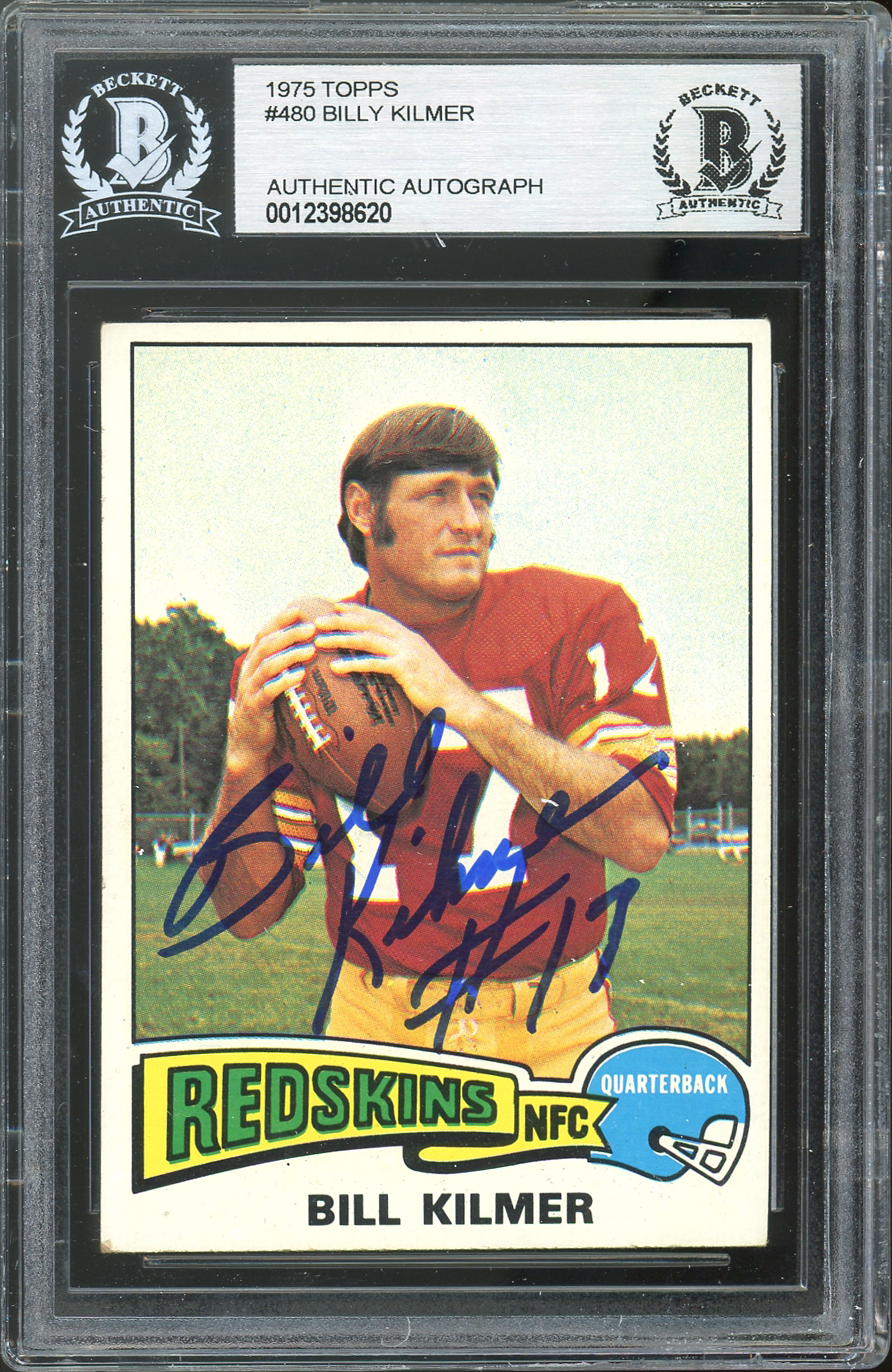 Redskins Billy Kilmer Authentic Signed 1975 Topps #480 Card BAS Slabbed