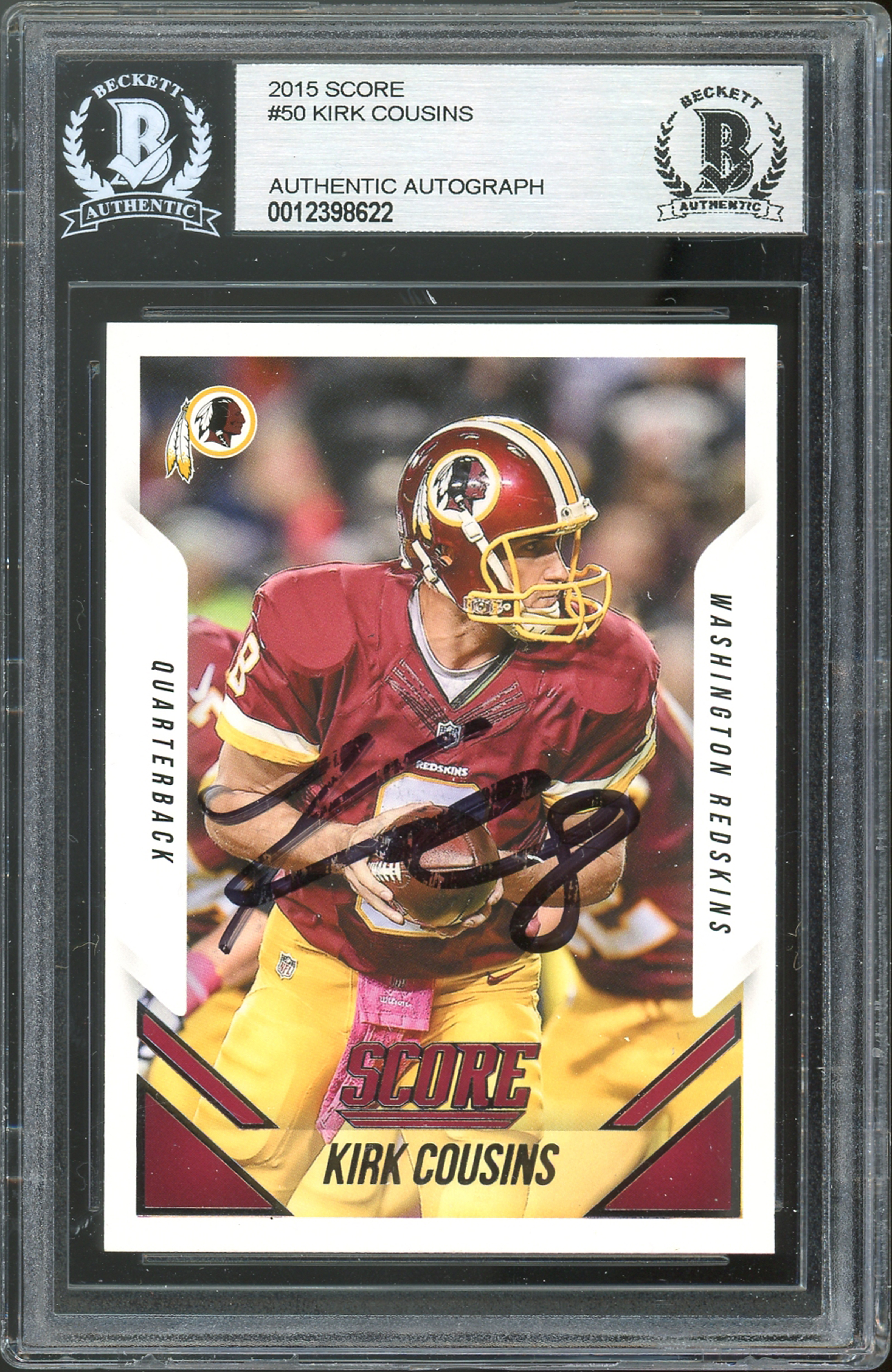 Redskins Kirk Cousins Authentic Signed 2015 Score #50 Card BAS Slabbed