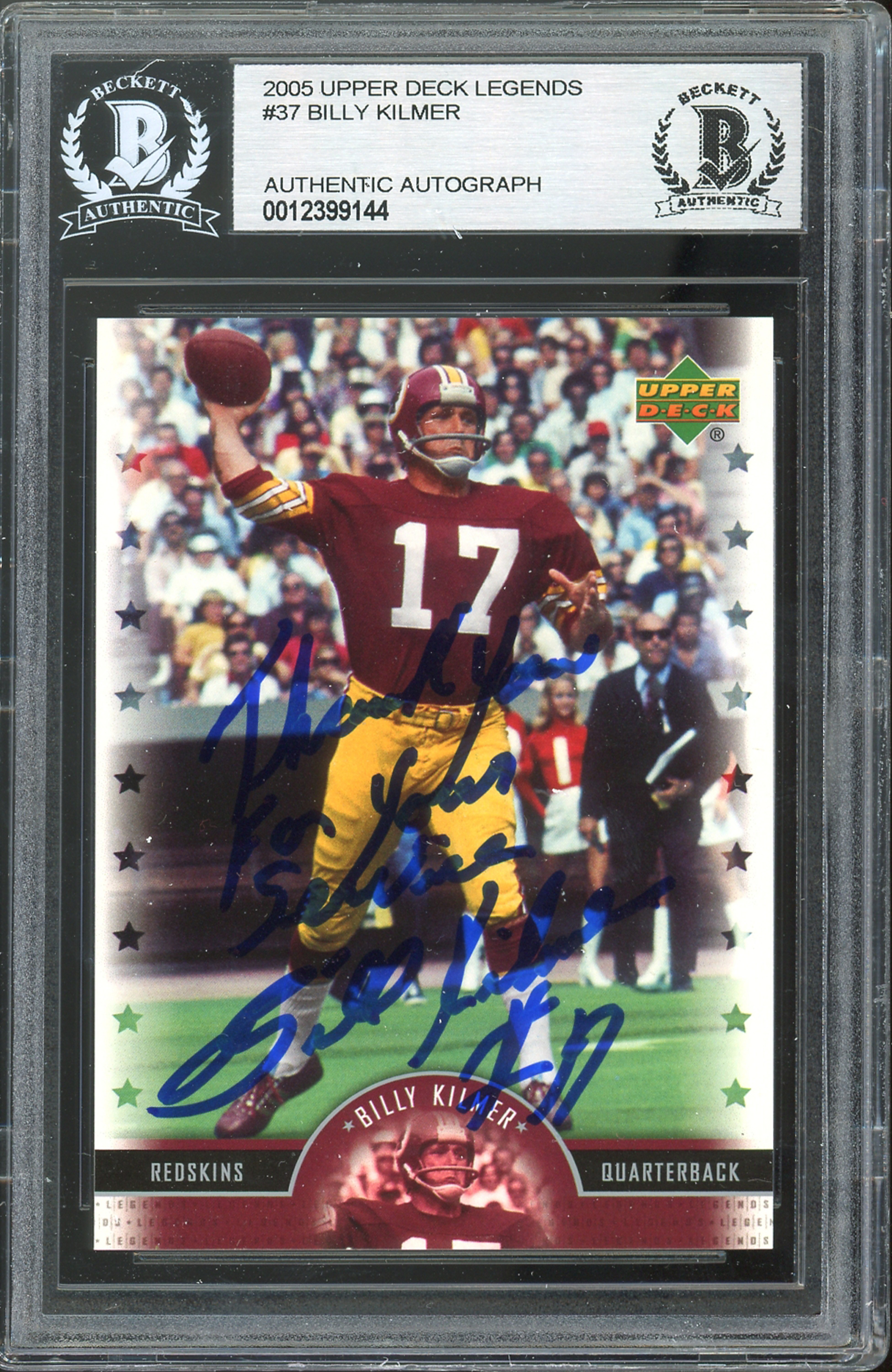 Redskins Billy Kilmer Signed 2005 Upper Deck Legends #37 Card BAS Slabbed