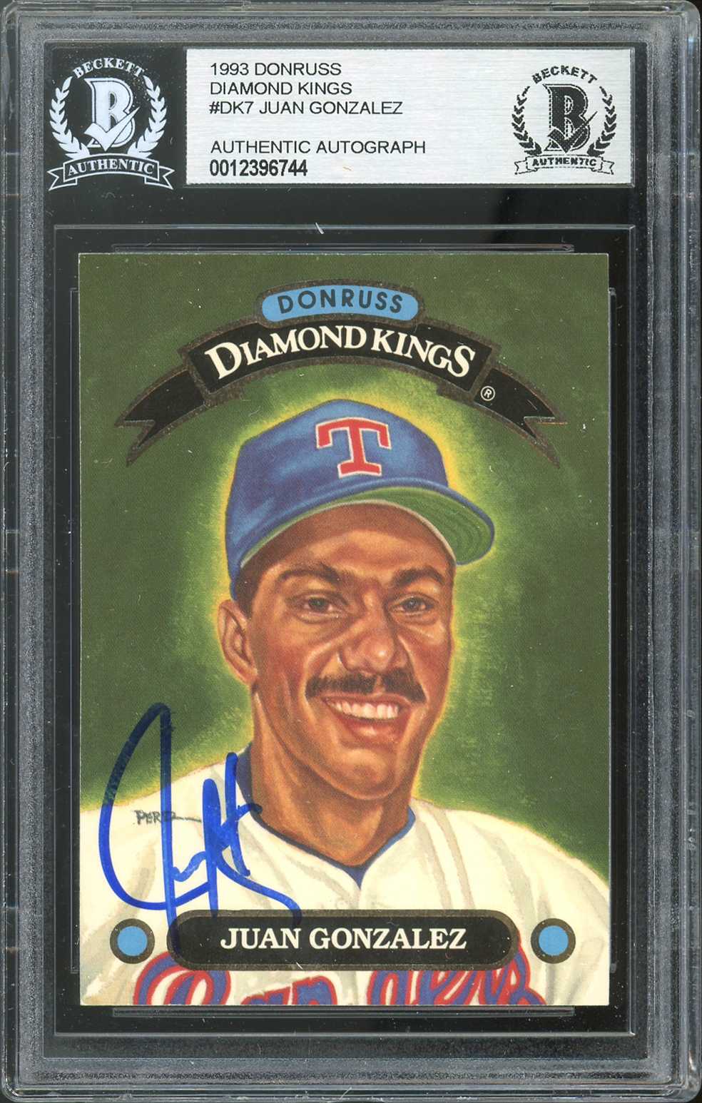 Rangers Juan Gonzalez Signed 1993 Donruss Diamond Kings #DK7 Card BAS Slabbed