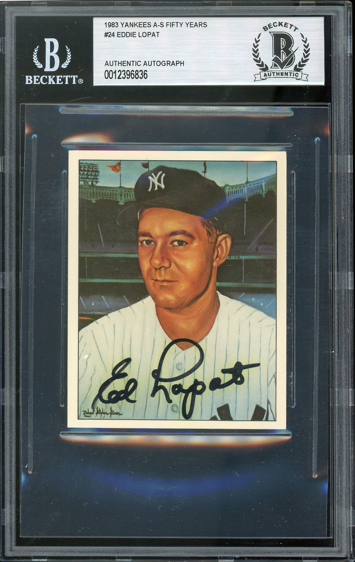 Yankees Eddie Lopat Signed 1983 Yankees A-S Fifty Years #24 Card BAS Slabbed