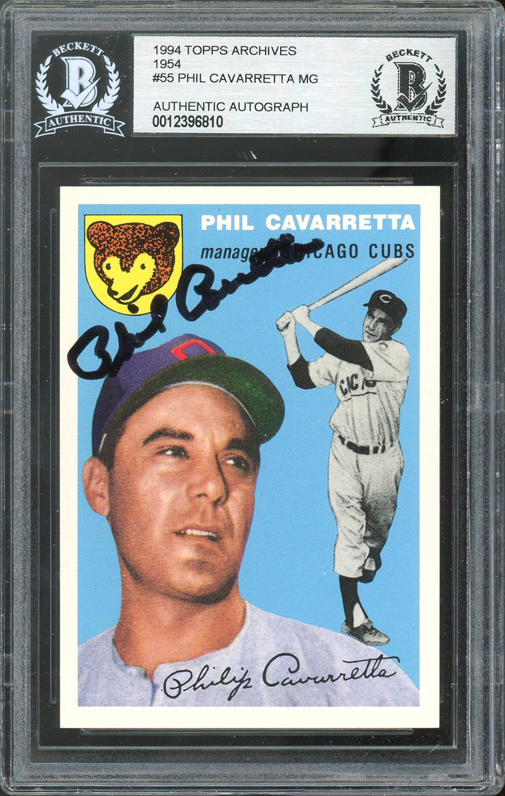 Cubs Phil Cavarretta Signed 1994 Topps Archives 1954 #55 Card BAS Slabbed